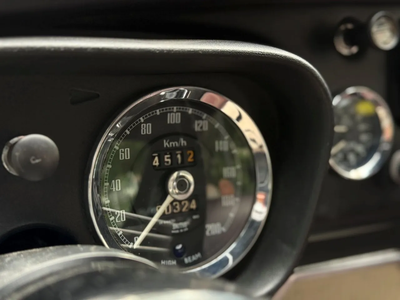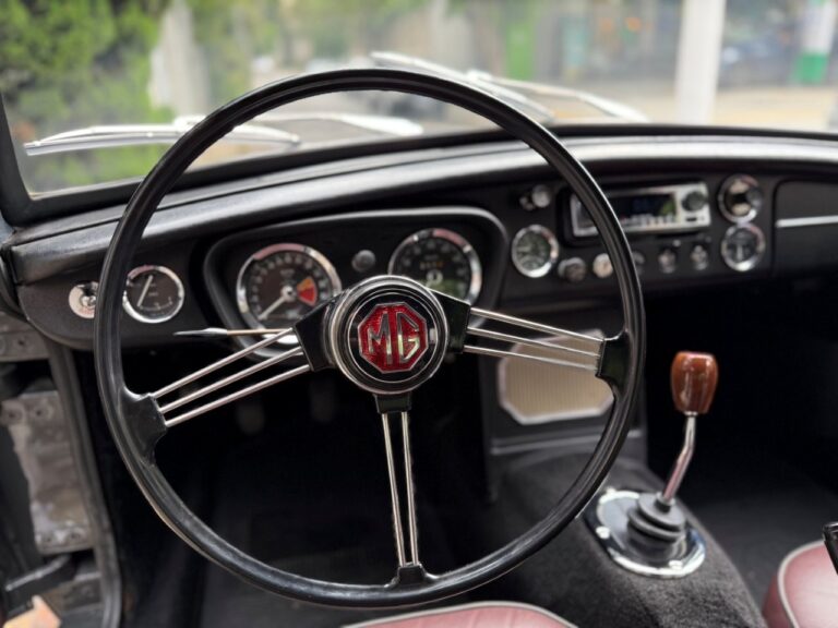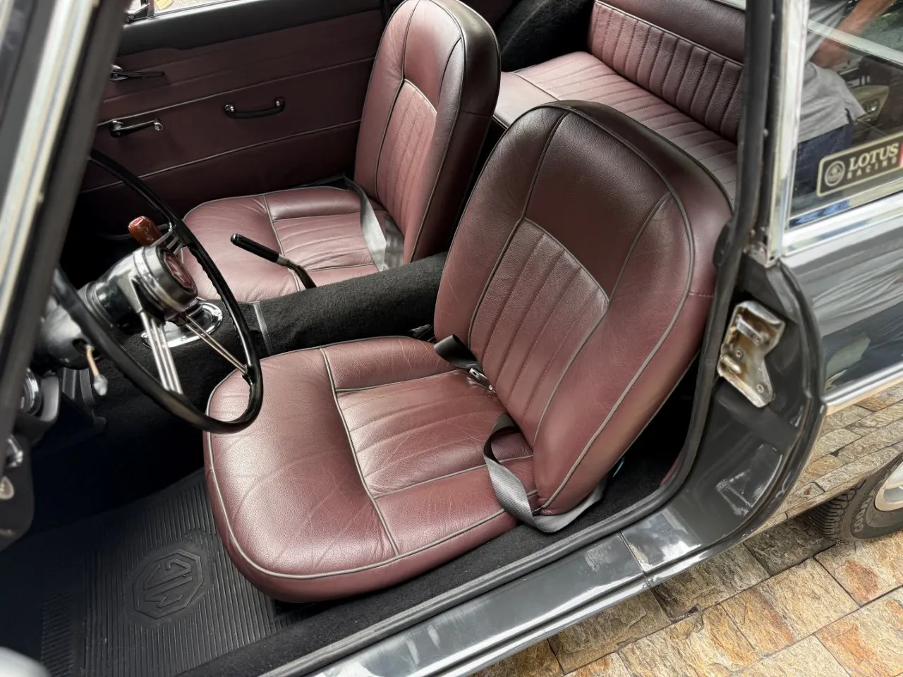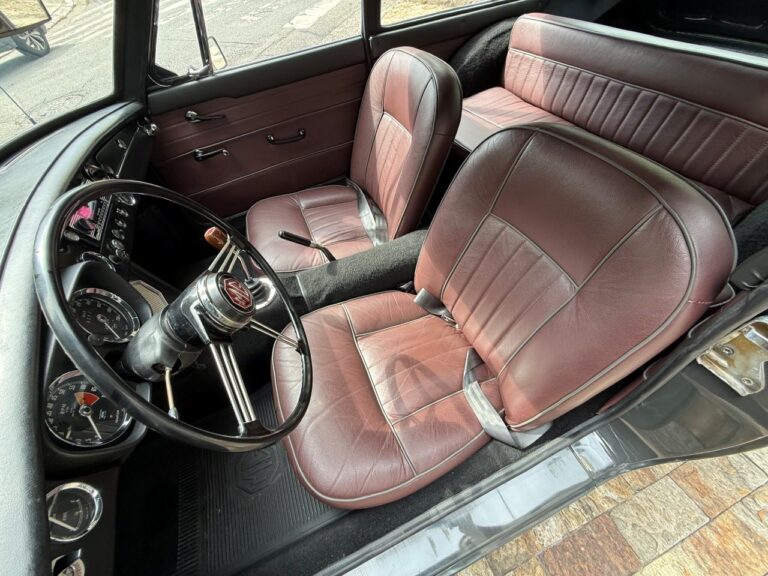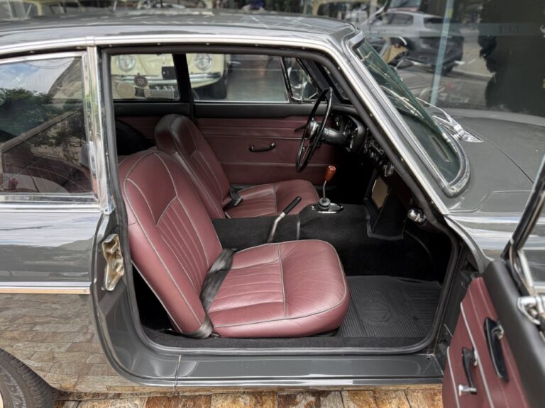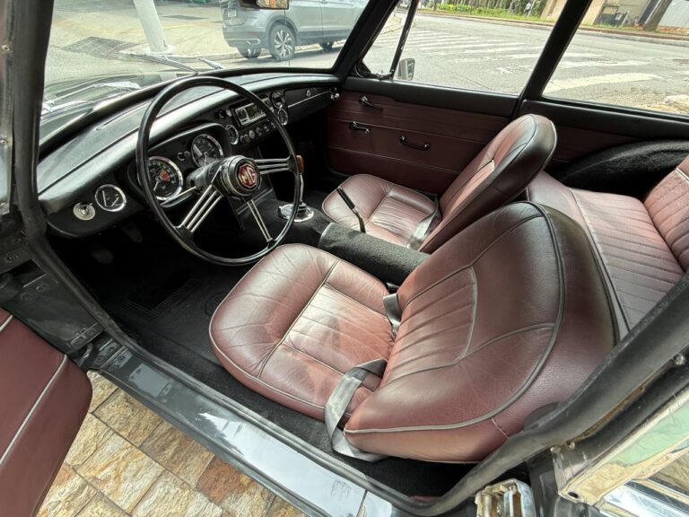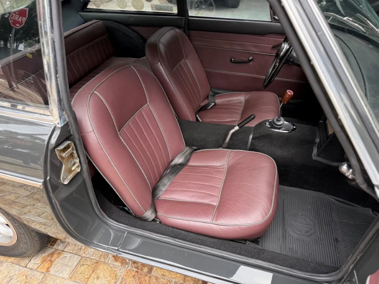 Na cor cinza rato com interior bordô, exclusivo fastback inglês 2+2 de baixa produção, com desenho assinado pela Pininfarina. Este exemplar pertenceu ao ex-presidente do MG Clube do Brasil e proprietário da R&E Restaurações, responsável por uma restauração completa realizada há muitos anos, abrangendo pintura, tapeçaria, mecânica, suspensão, câmbio, embreagem e parte elétrica, já com alternador no lugar do dínamo original. Equipado com câmbio manual de 4 marchas com overdrive Laycock curto, luz de mapa, instrumentação Smiths completa com conta-giros e indicadores de combustível, pressão do óleo e temperatura da água, motor 1.8 com válvulas no cabeçote entregando 95 cv, rodas de liga leve inglesas de oito gomos, faróis e milhas Lucas, adesivos no vidro lateral e placa preta do ano com final 7. Um MGB GT extremamente correto, bem acertado e com histórico relevante, reunindo elegância, dirigibilidade e autenticidade.