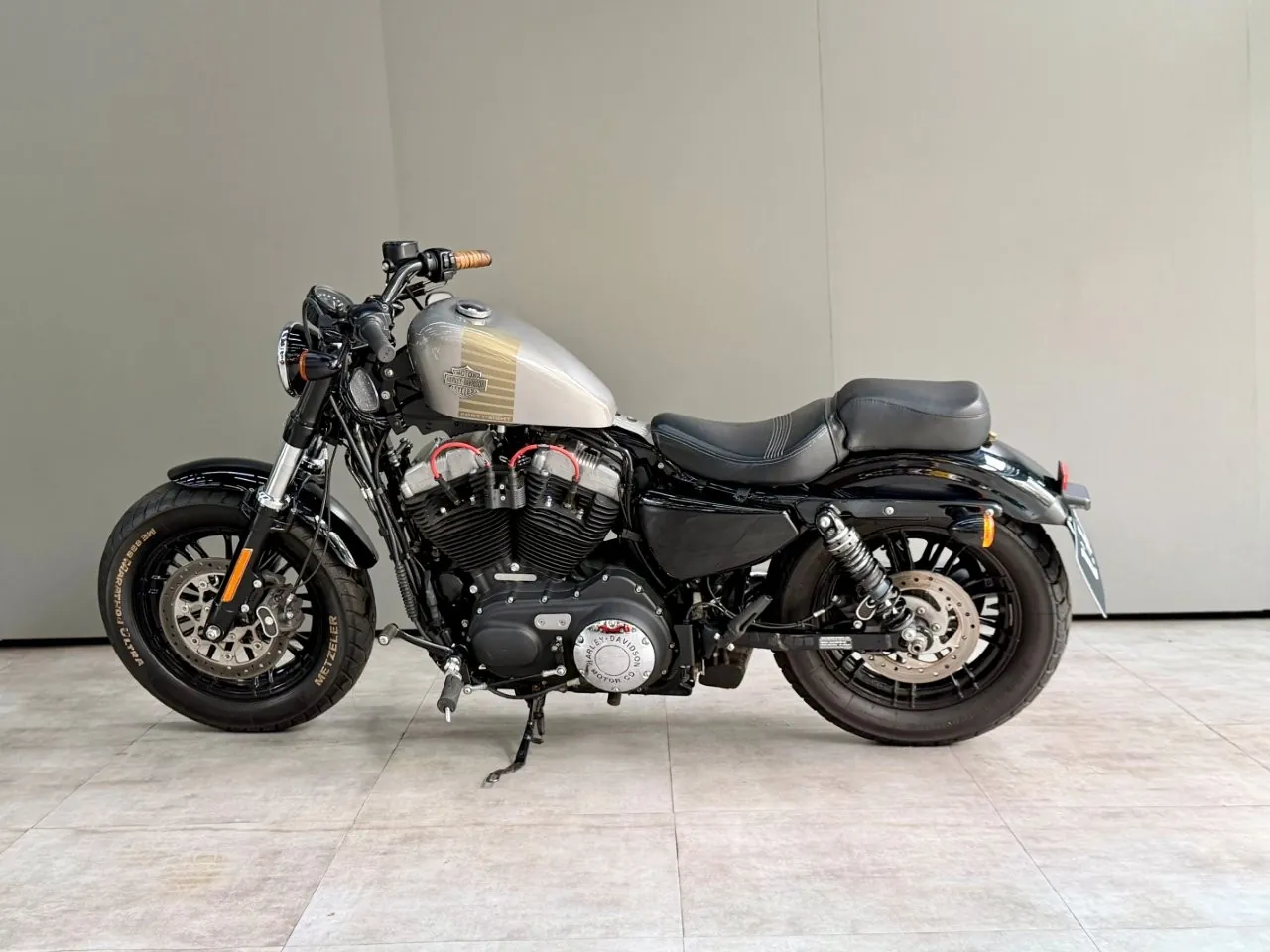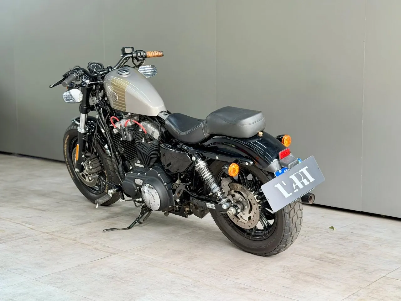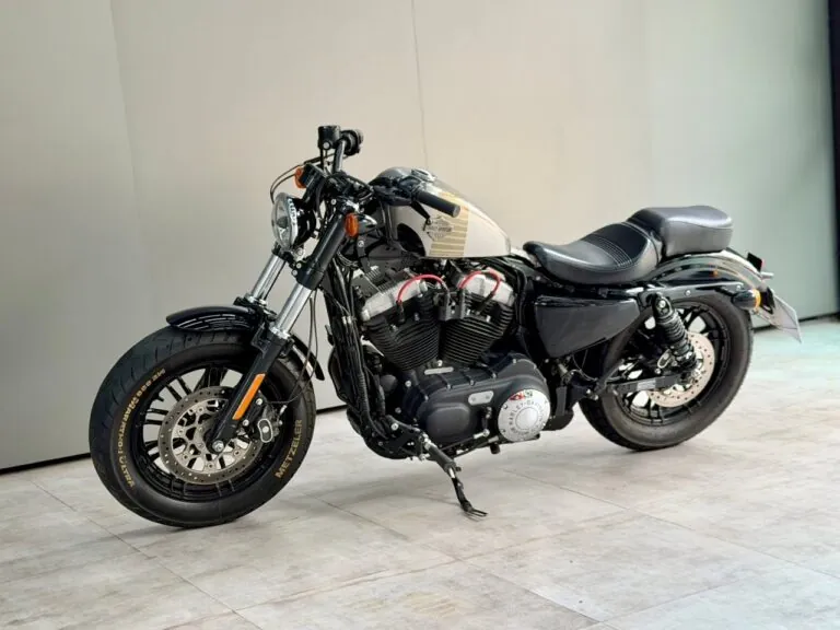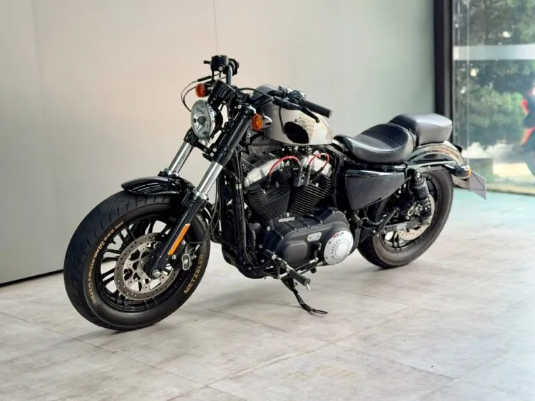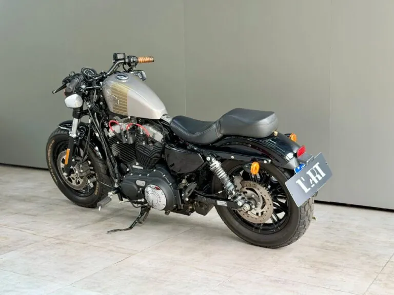 Harley-Davidson Sportster Forty-Eight, com 44 mil km. Moto original, sem excessos, com motor V-Twin 1200. Visual limpo e clássico da linha 48, com tanque compacto, rodas pretas e posição de pilotagem baixa. Um conjunto equilibrado, direto ao ponto, que mantém a essência da Sportster em uma das suas versões mais marcantes.