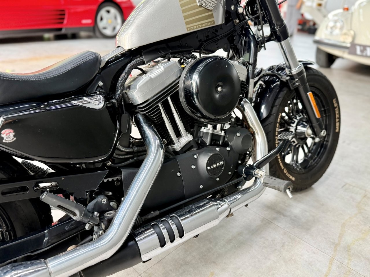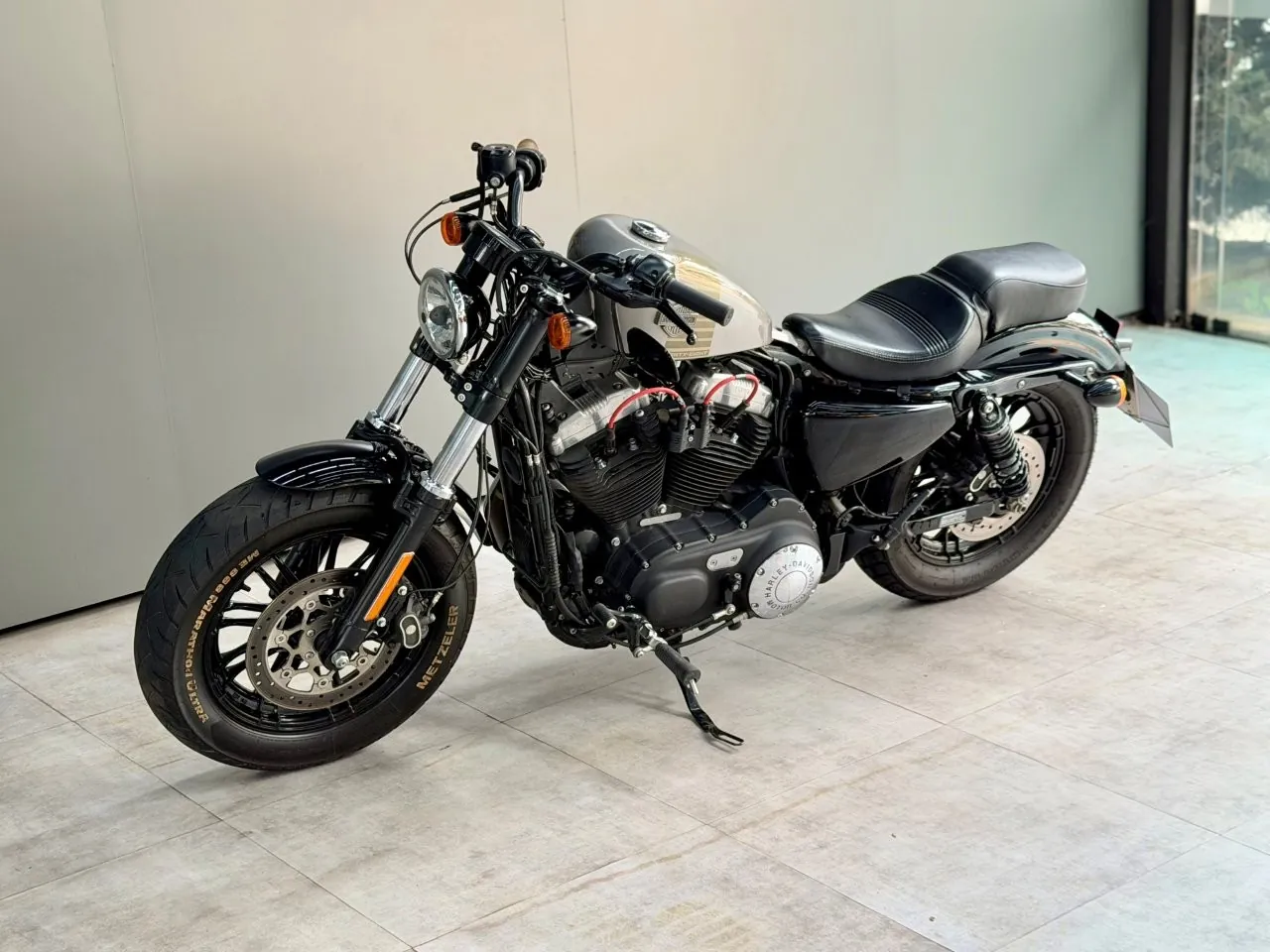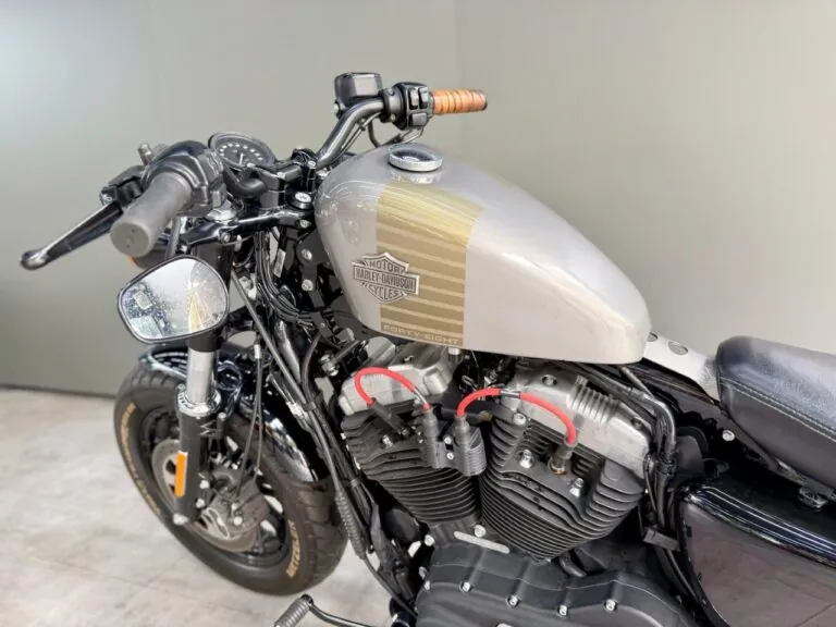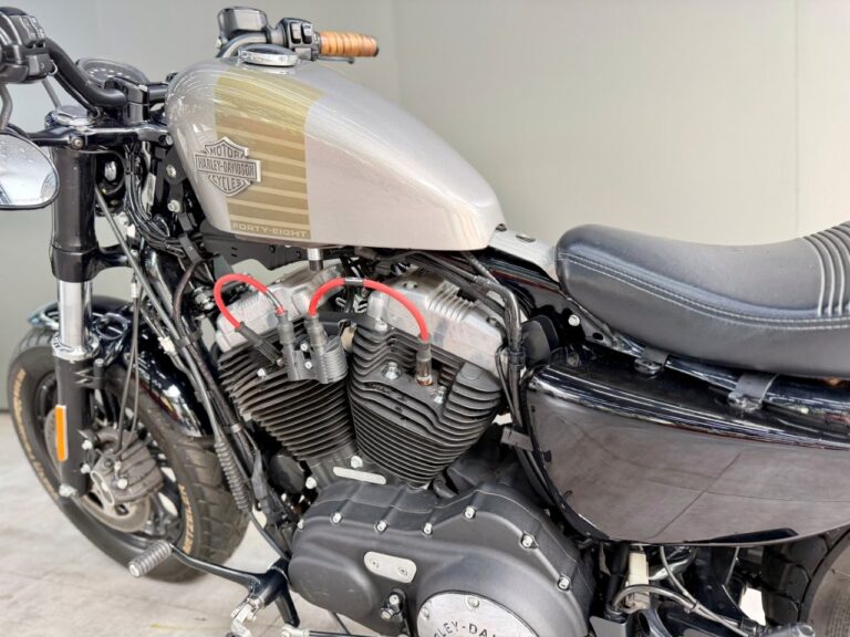 Harley-Davidson Sportster Forty-Eight, com 44 mil km. Moto original, sem excessos, com motor V-Twin 1200. Visual limpo e clássico da linha 48, com tanque compacto, rodas pretas e posição de pilotagem baixa. Um conjunto equilibrado, direto ao ponto, que mantém a essência da Sportster em uma das suas versões mais marcantes.