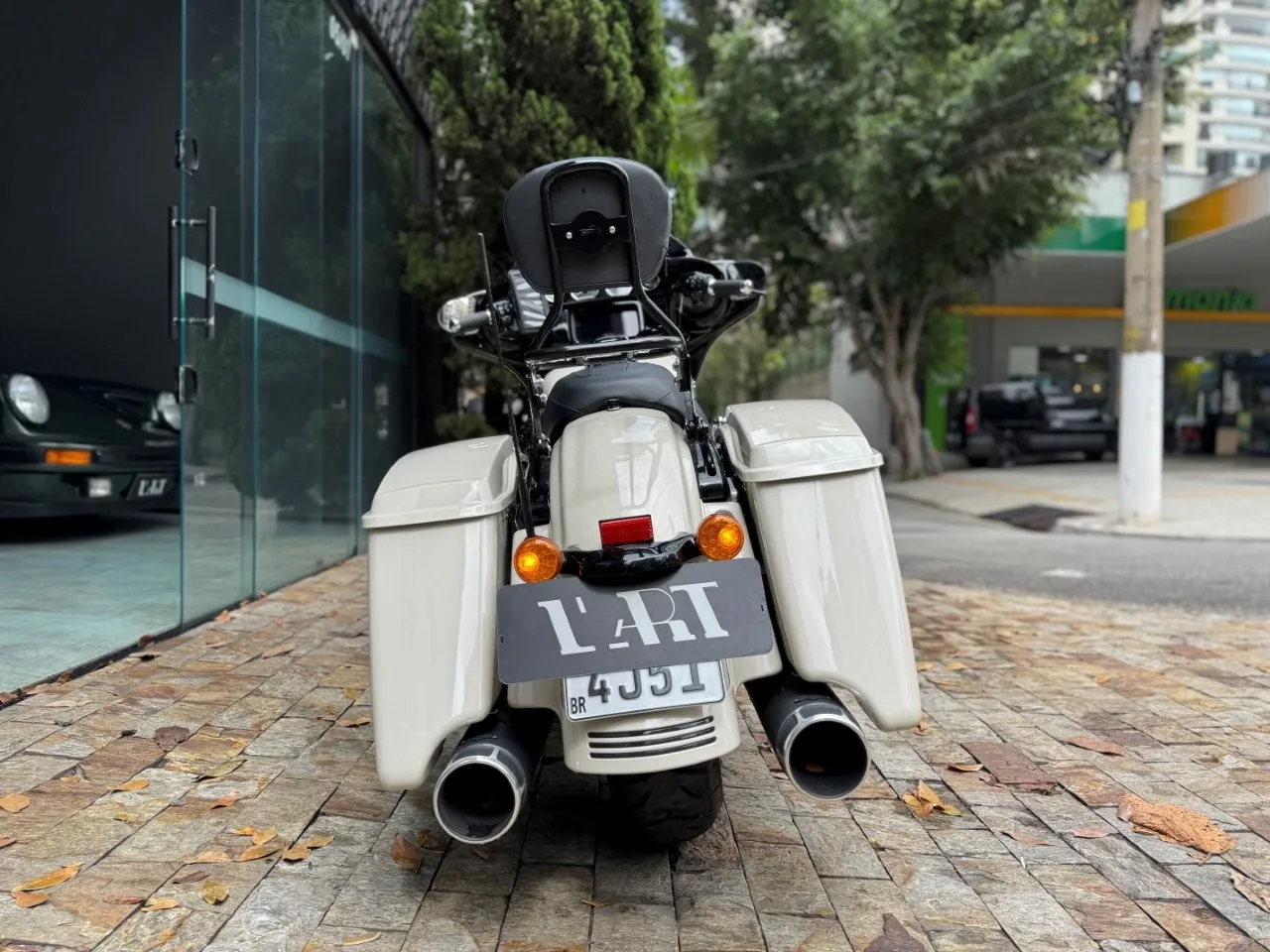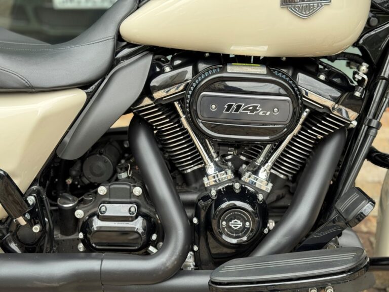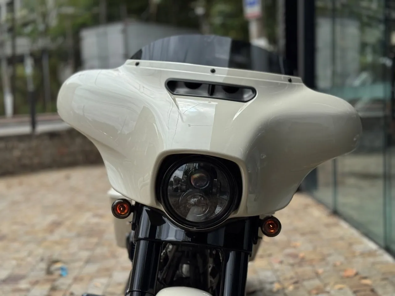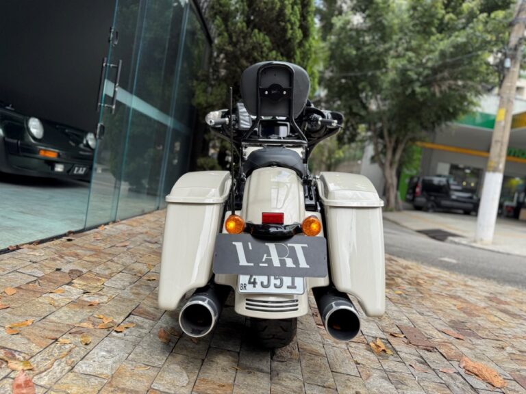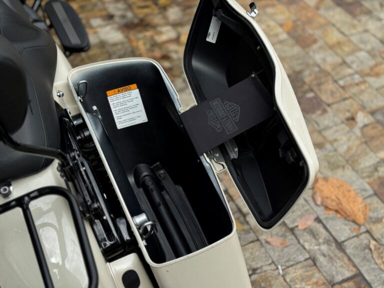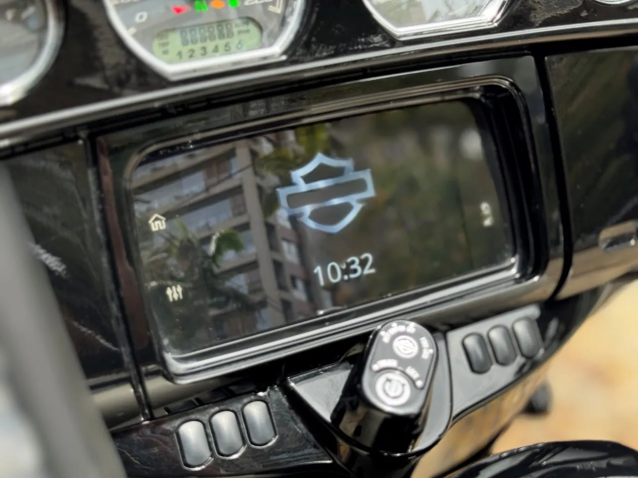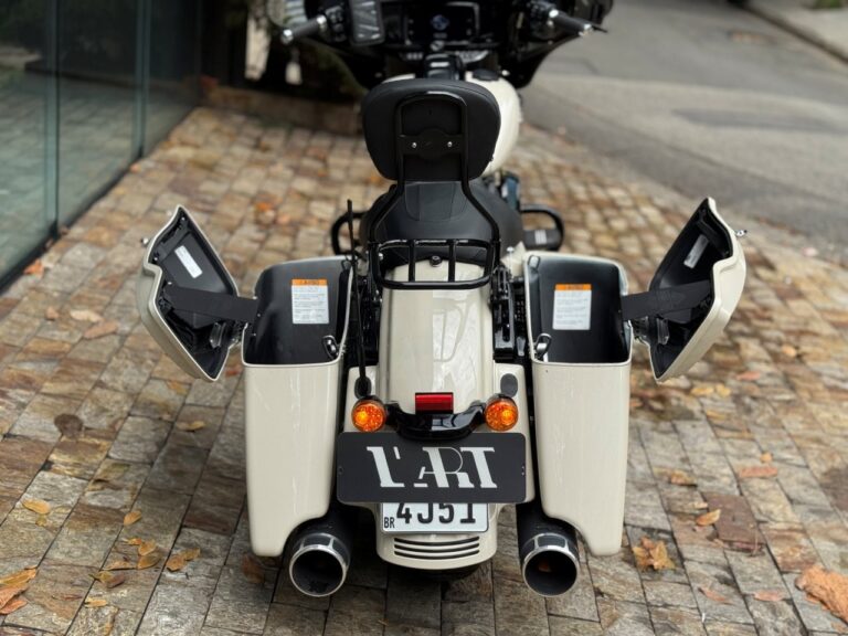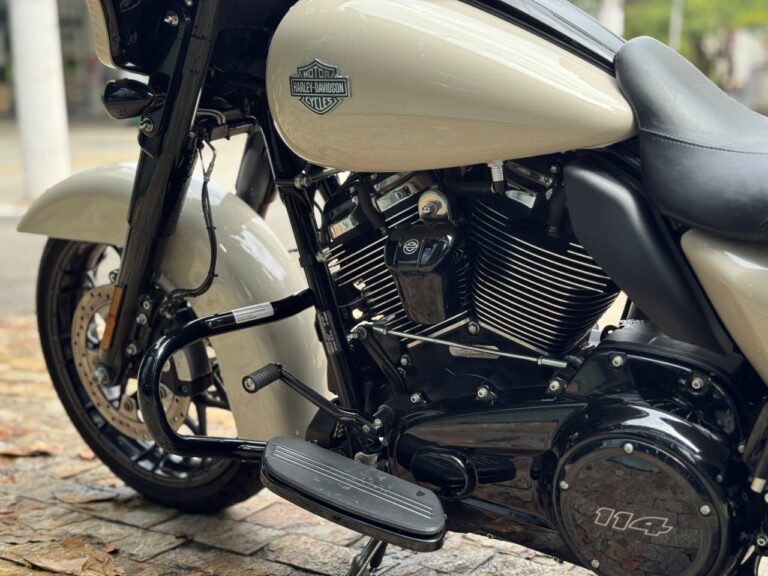 A Harley-Davidson Street Glide Special é uma moto clássica que une conforto e presença. Vem com motor Milwaukee-Eight 114 V-Twin de 1.868 cc, torque de 15,8 kgfm, câmbio de 6 marchas e transmissão por correia. Suspensão calibrada para estrada e cidade, rodas grandes e aerodinâmica de respeito. Por dentro, som Boom! Box com 4 alto-falantes, conectividade completa e tecnologia de segurança com ABS, controle de tração e torque. É aquela moto que impressiona na estrada, mas também é confortável para o dia a dia.
