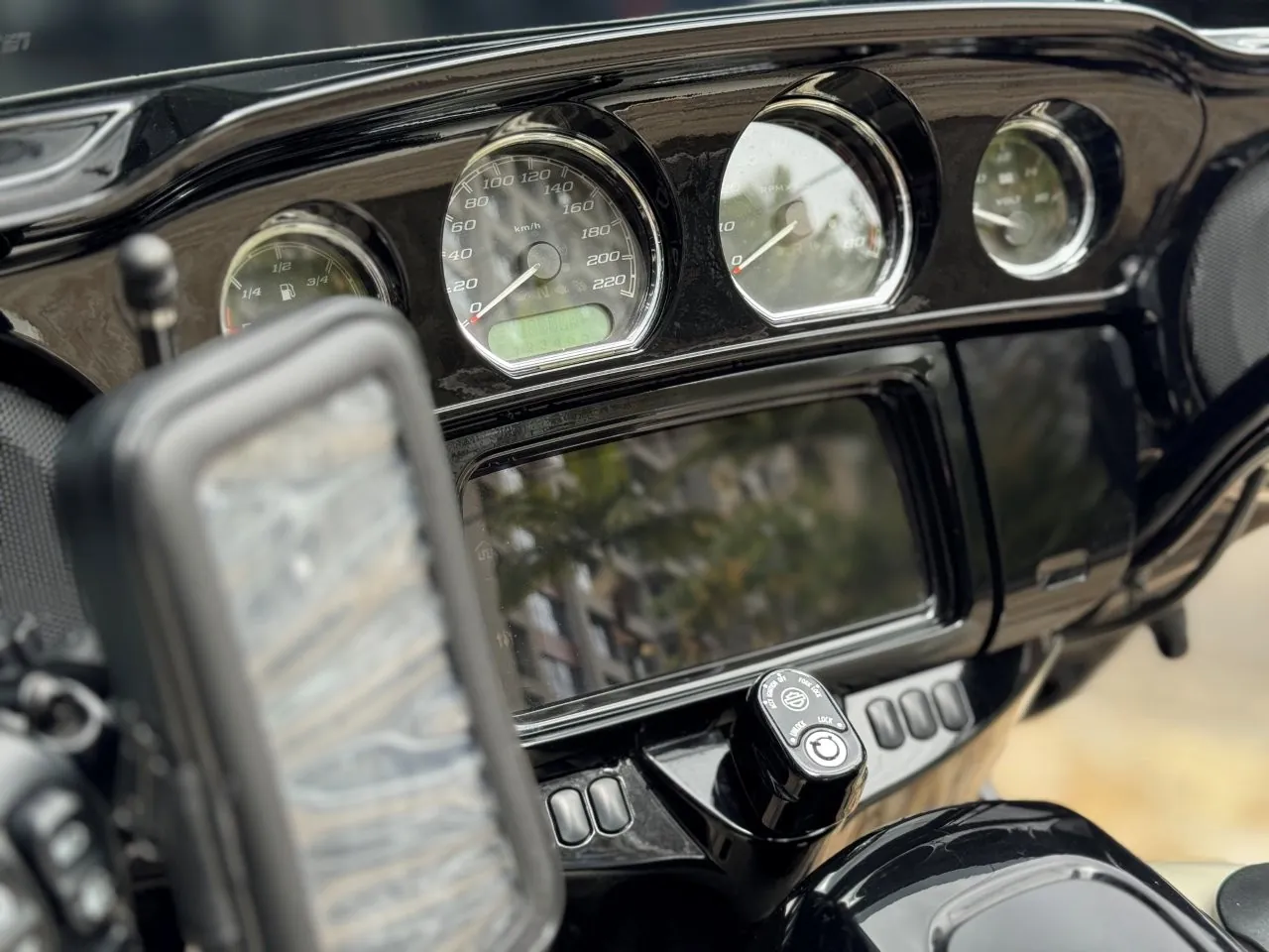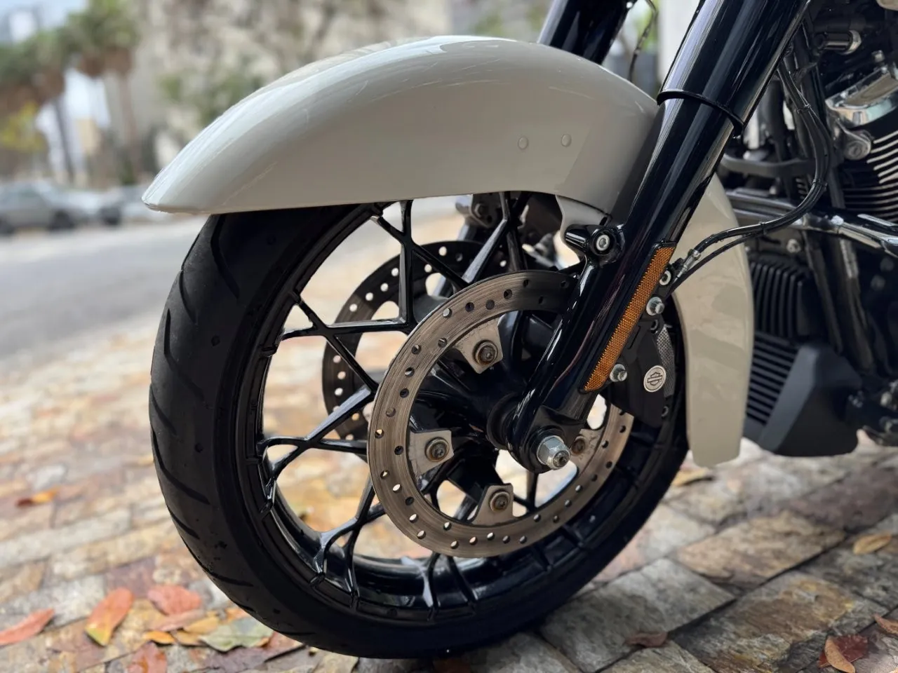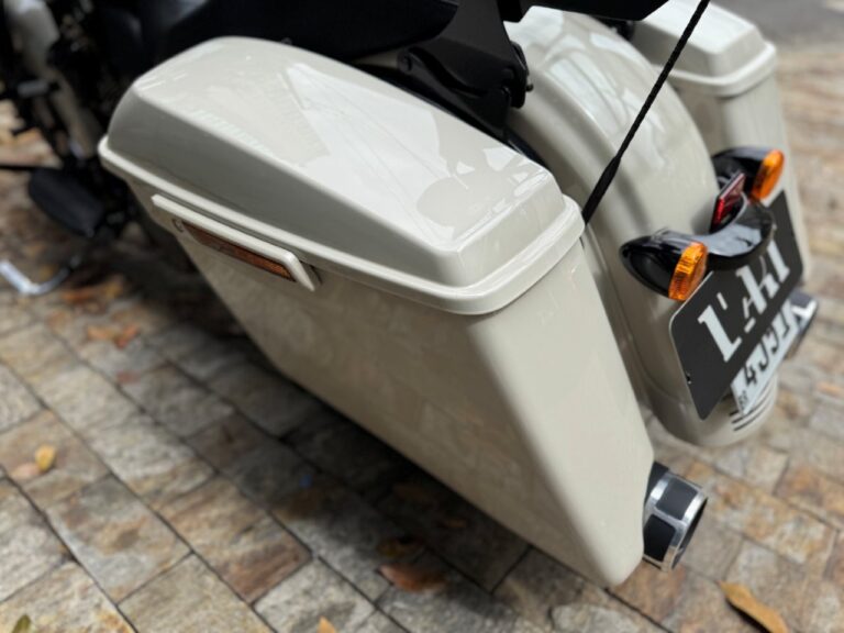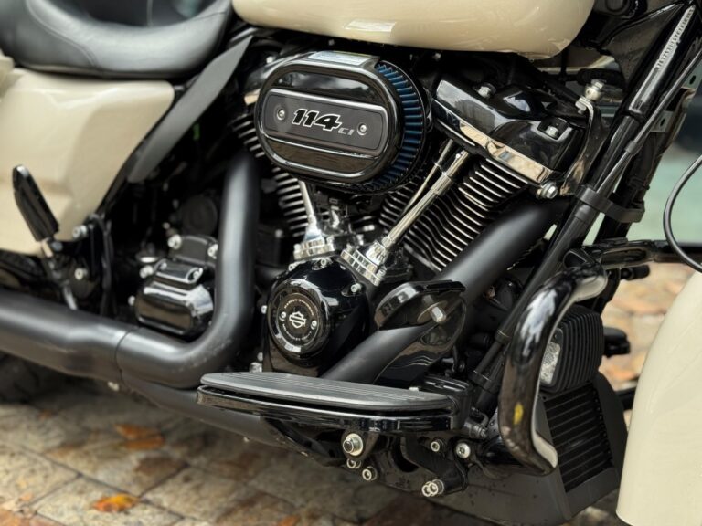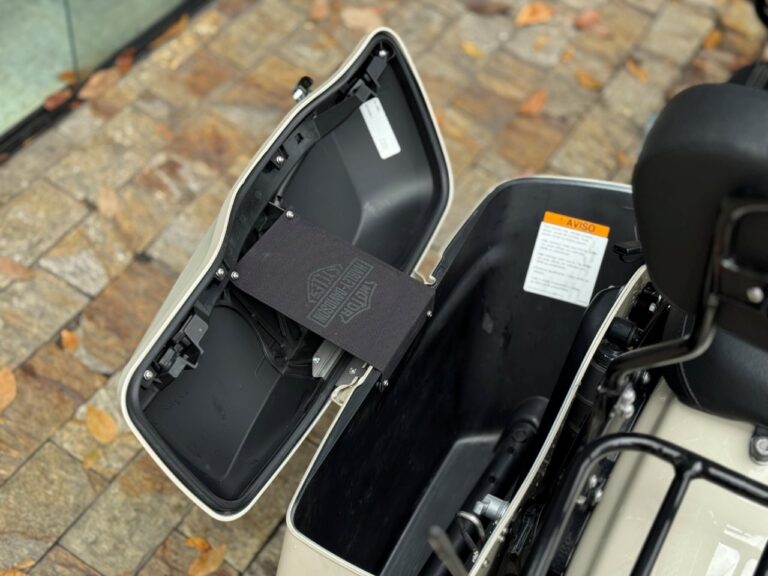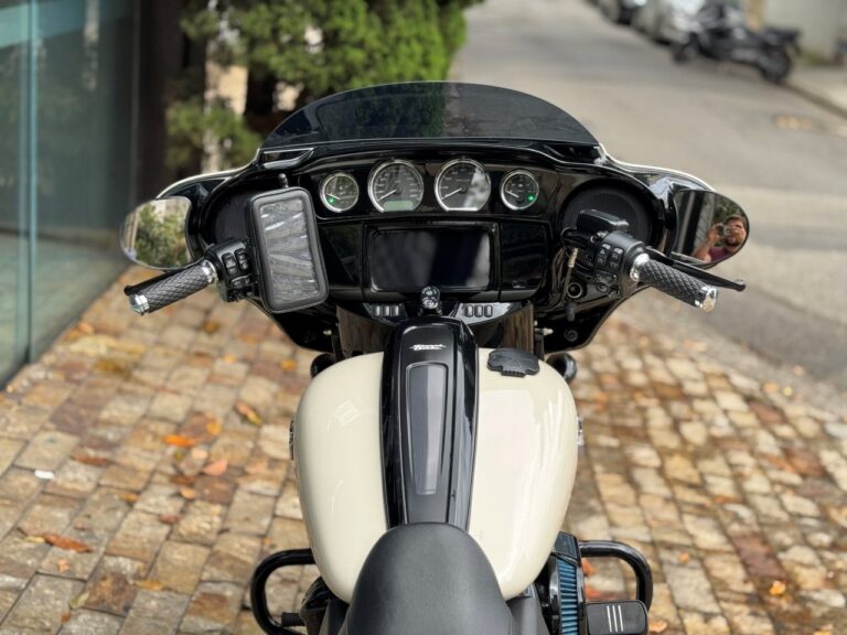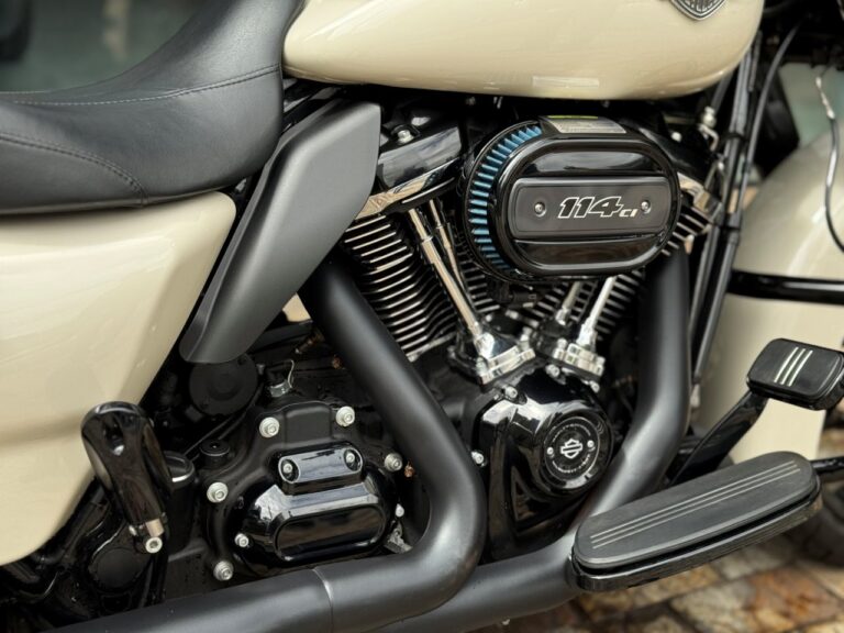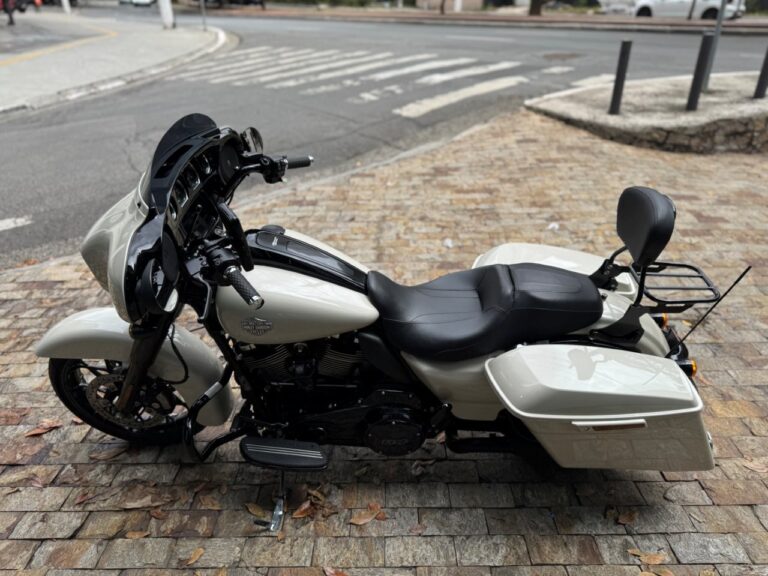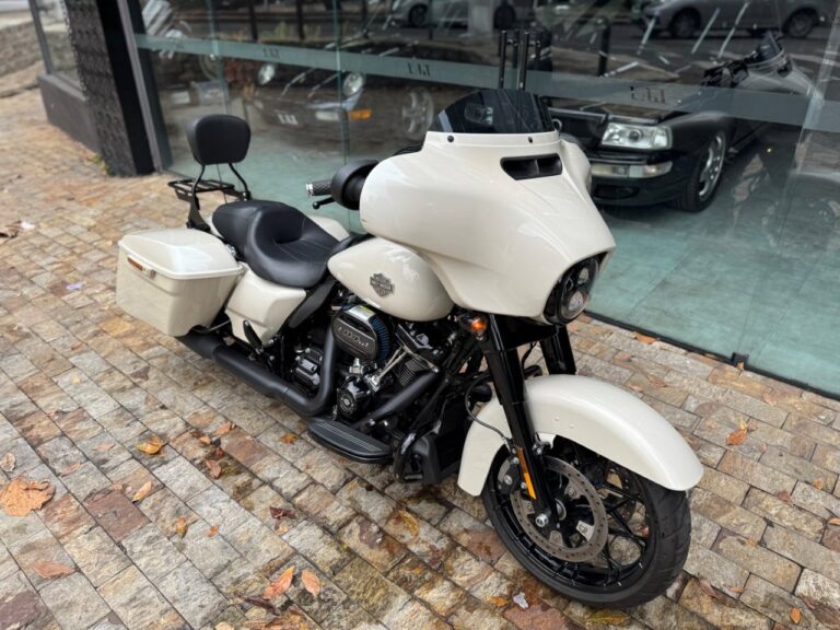A Harley-Davidson Street Glide Special é uma moto clássica que une conforto e presença. Vem com motor Milwaukee-Eight 114 V-Twin de 1.868 cc, torque de 15,8 kgfm, câmbio de 6 marchas e transmissão por correia. Suspensão calibrada para estrada e cidade, rodas grandes e aerodinâmica de respeito. Por dentro, som Boom! Box com 4 alto-falantes, conectividade completa e tecnologia de segurança com ABS, controle de tração e torque. É aquela moto que impressiona na estrada, mas também é confortável para o dia a dia.