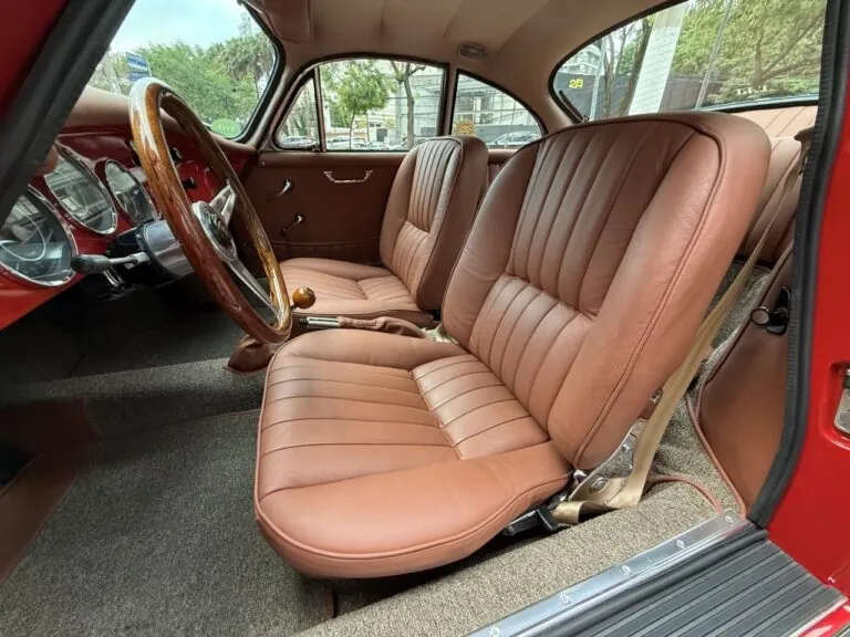 A Mercedes-Benz 500 SL 1982 é um dos roadsters mais marcantes da marca. O nome SL vem de “Sport Leicht” — Esporte Leve, e esse conceito aparece no carro todo. Ela vem com o V8 5.0 em alumínio, 230 cv, um motor conhecido pela força, suavidade e durabilidade. A combinação com o câmbio automático de 4 marchas e a tração traseira entrega exatamente aquilo que se espera de uma R107: acelera fácil, viaja macio e responde do jeito certo. Em curva, é um carro que surpreende pela estabilidade. Os freios a disco nas quatro rodas e as rodas de liga leve completam o conjunto. Essa 500 SL está em ótimo estado geral, alinhada, íntegra e com aquela presença clássica que só uma R107 bem cuidada tem.