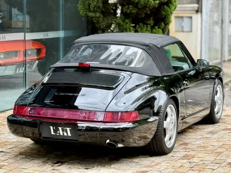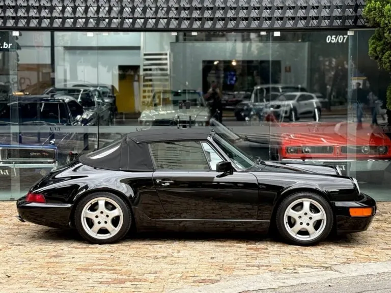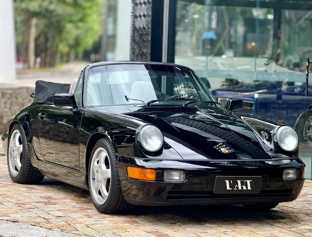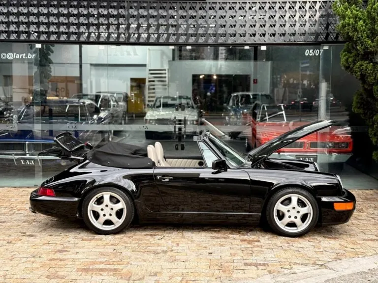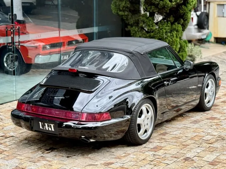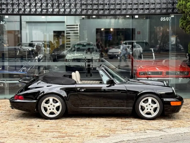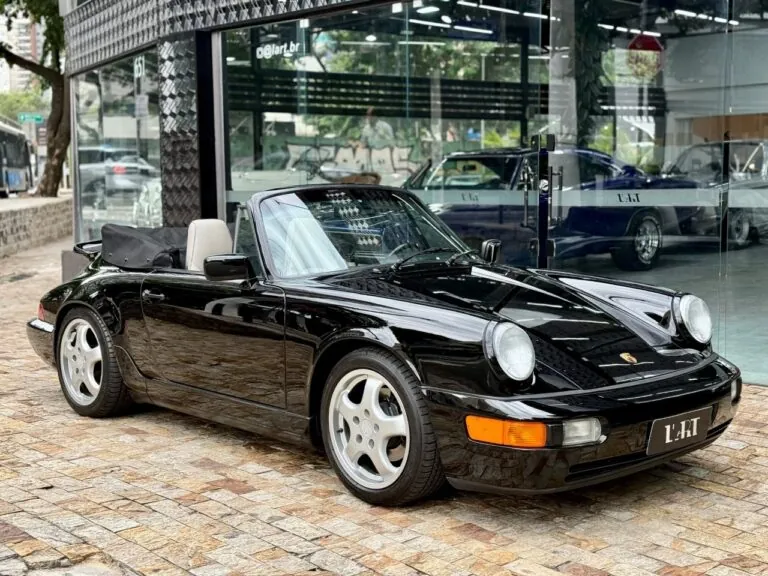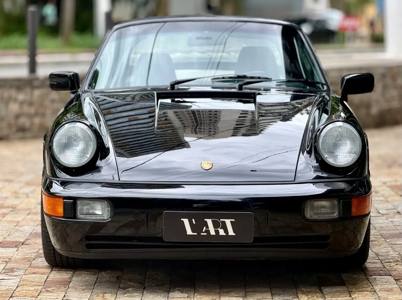 Baseado nas inovações do 959, o 964 foi lançado neste período com a introdução do Carrera 4, com tração nas 4 rodas, uma decisão que surpreendeu muitos, mas demonstrou o compromisso da Porsche com seus clientes. O 964 foi um dos primeiros carros do mundo a apresentar airbags duplos de fábrica. Seu motor 6 cilindros boxer produz 250 CV com câmbio manual de 5 velocidades. Nosso 964 está em excelente estado geral, possui rodas aro 17'' e 4 pneus novos. Na linda combinação de cores preta com interior cinza e capota azul preta.