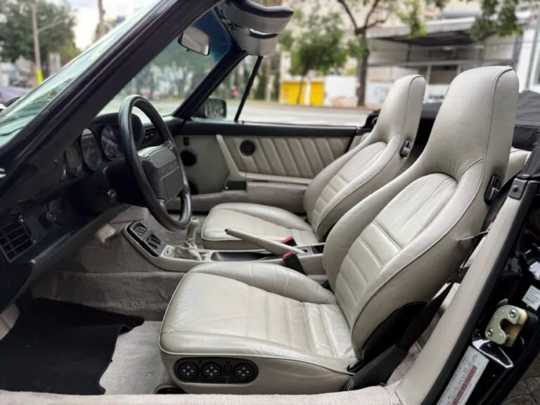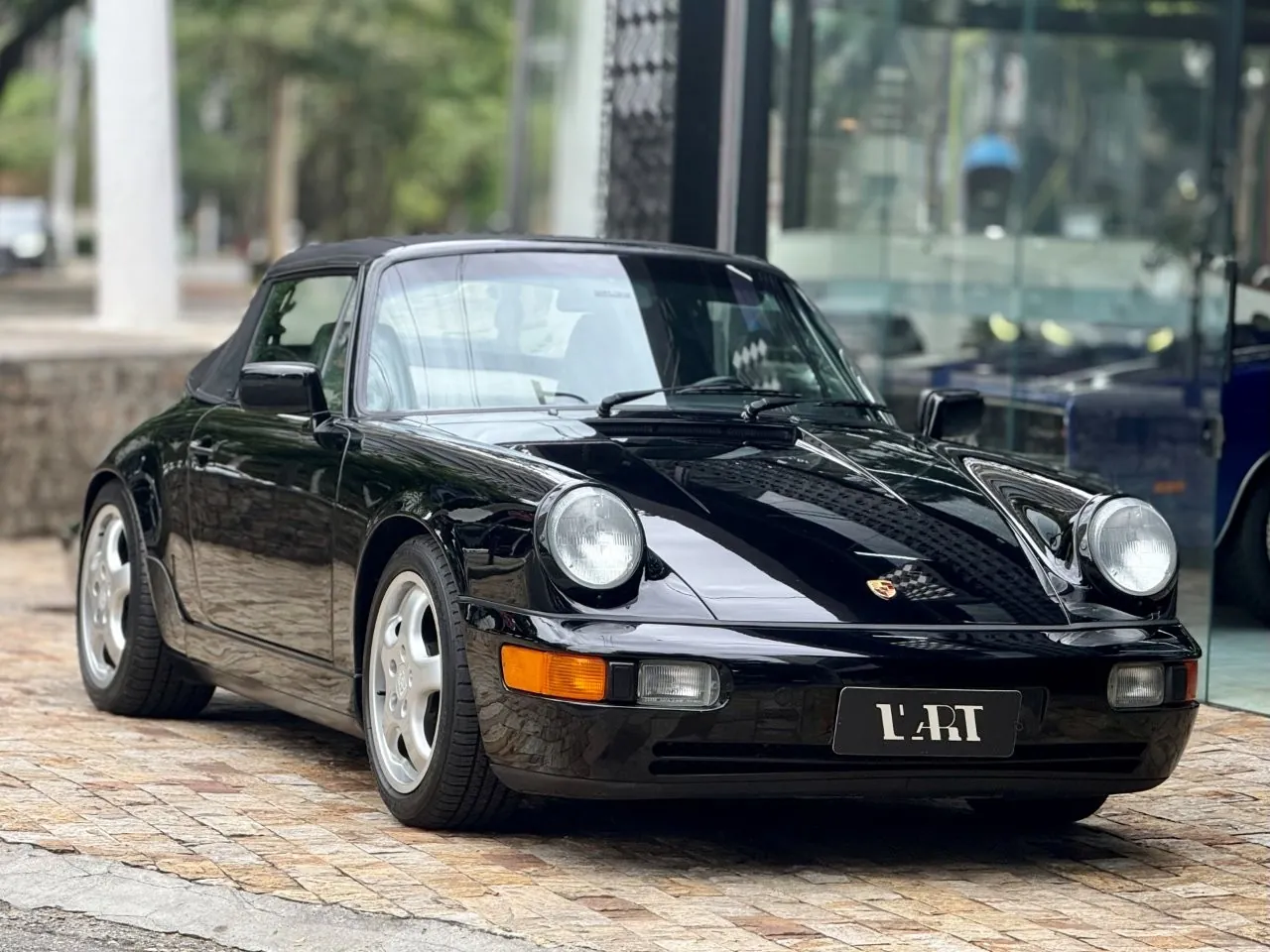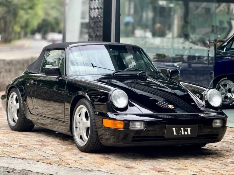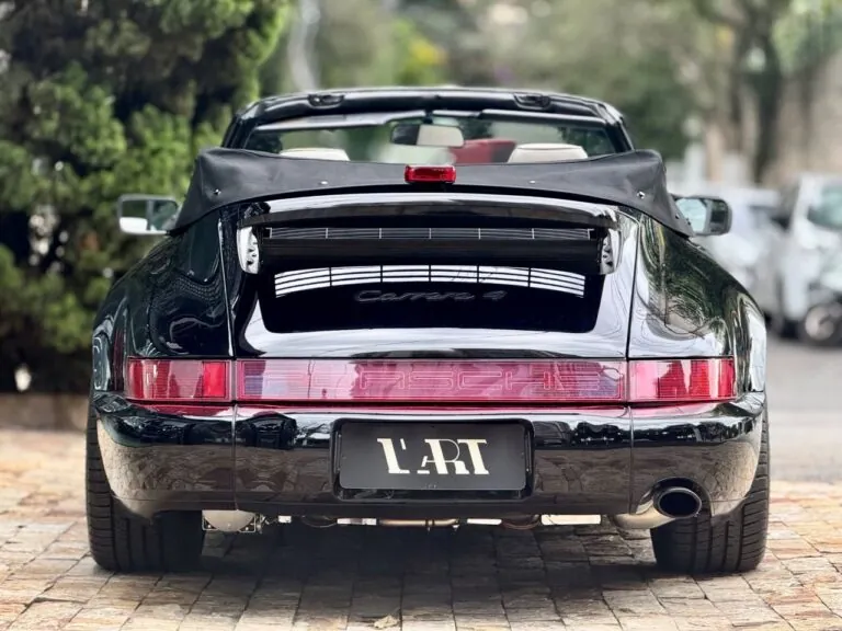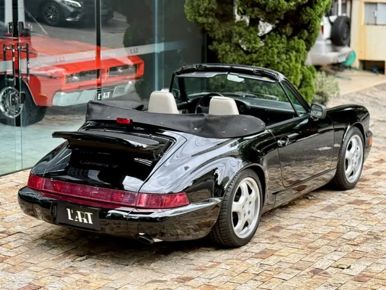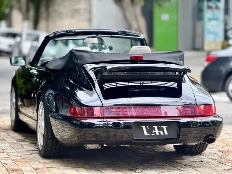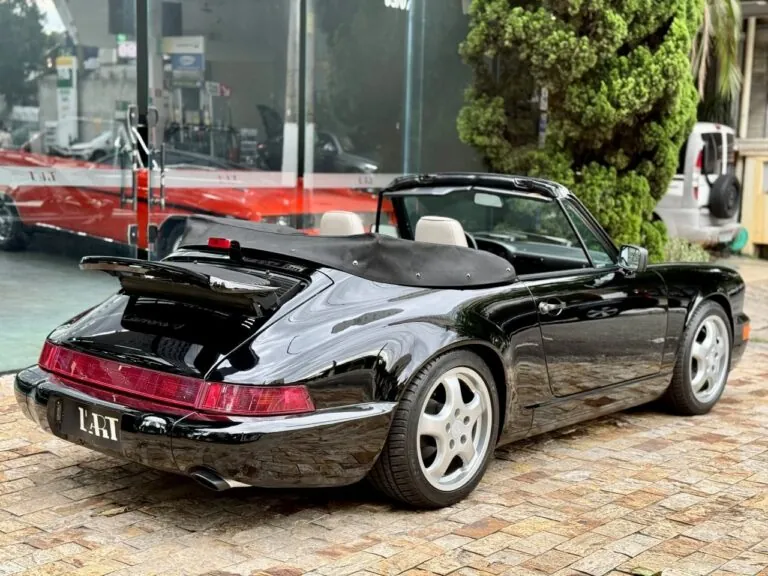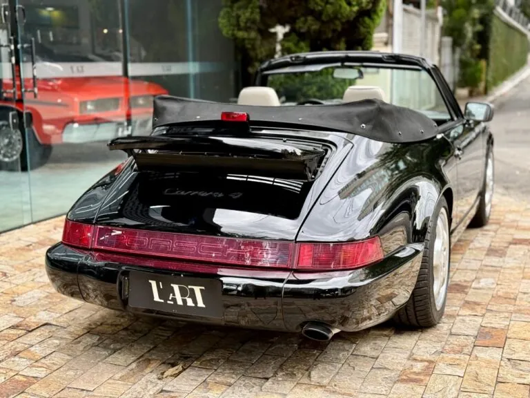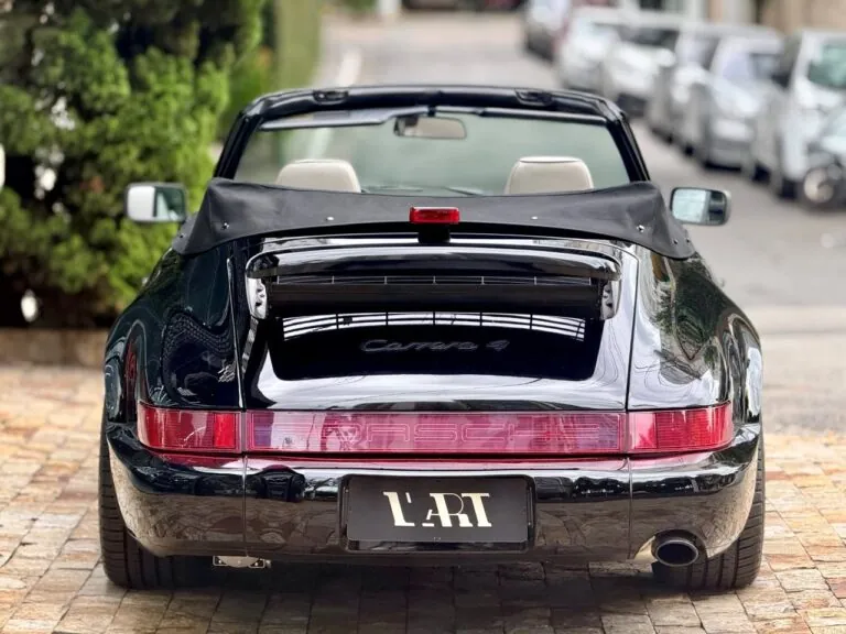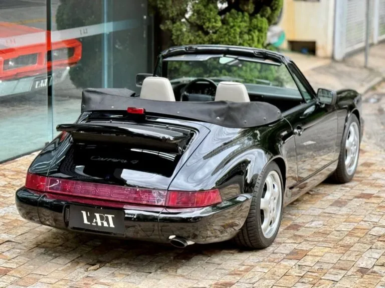 Baseado nas inovações do 959, o 964 foi lançado neste período com a introdução do Carrera 4, com tração nas 4 rodas, uma decisão que surpreendeu muitos, mas demonstrou o compromisso da Porsche com seus clientes. O 964 foi um dos primeiros carros do mundo a apresentar airbags duplos de fábrica. Seu motor 6 cilindros boxer produz 250 CV com câmbio manual de 5 velocidades. Nosso 964 está em excelente estado geral, possui rodas aro 17'' e 4 pneus novos. Na linda combinação de cores preta com interior cinza e capota azul preta.