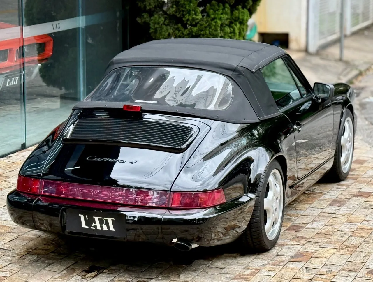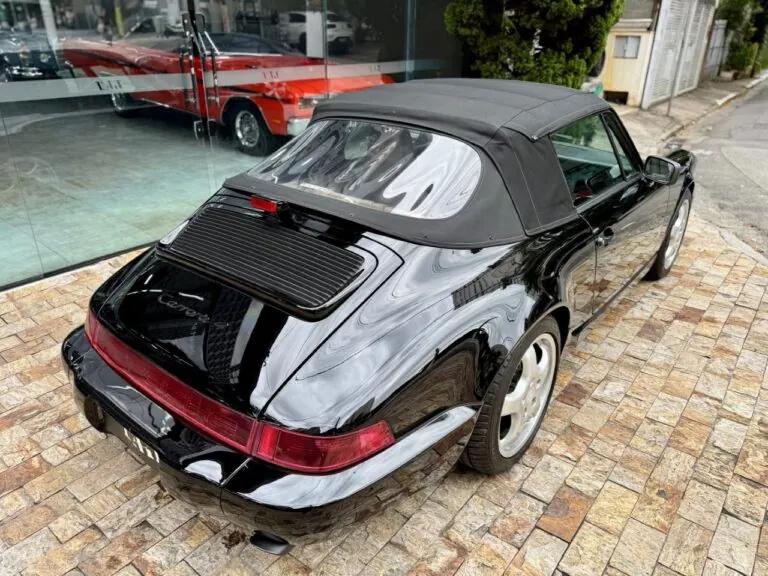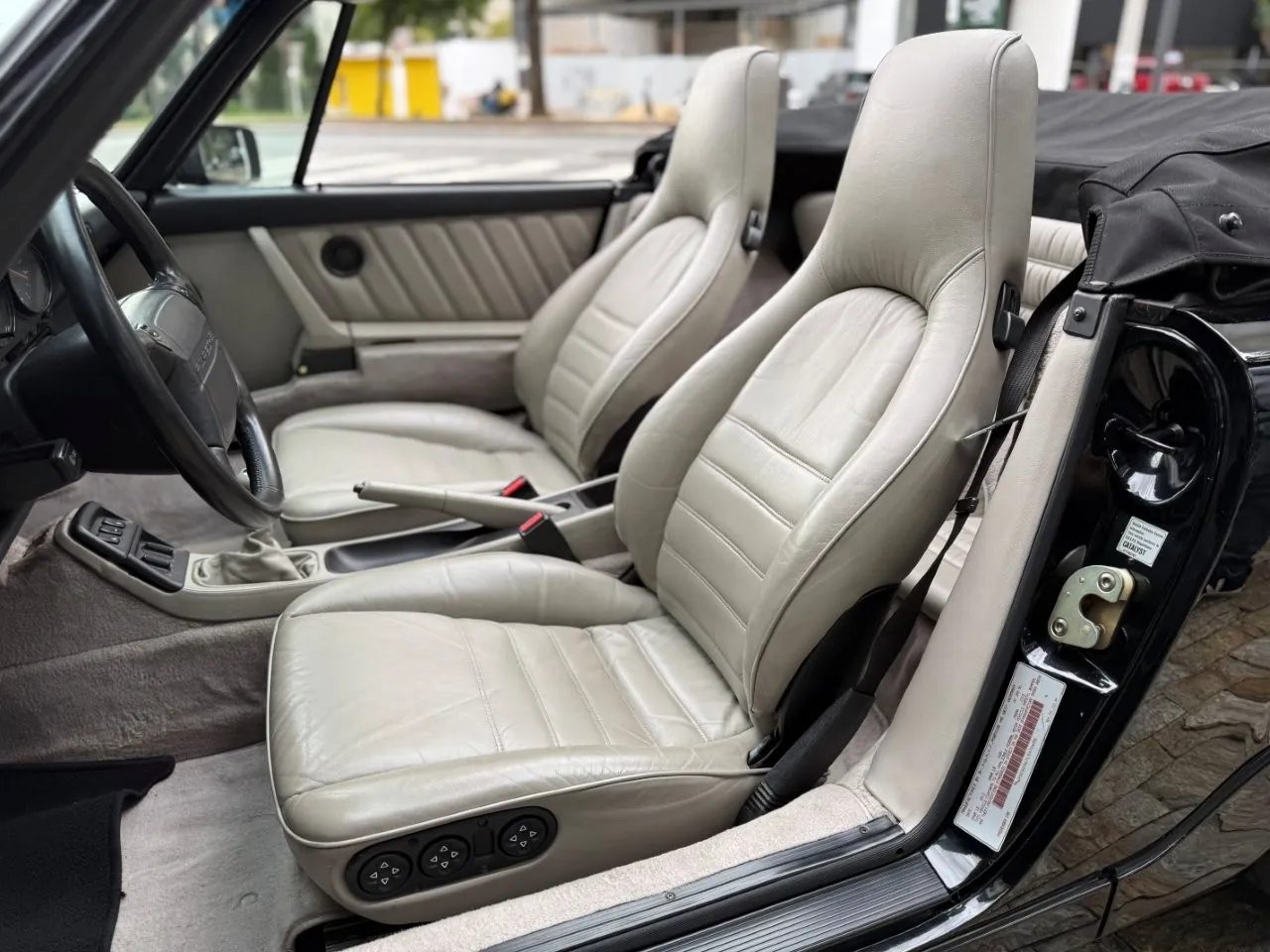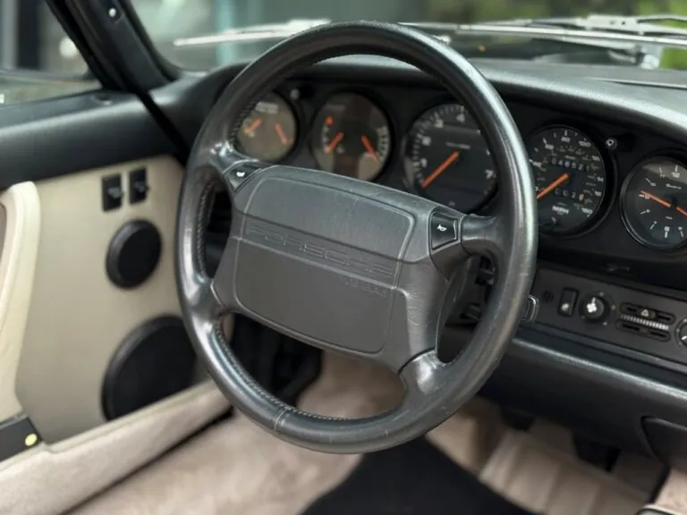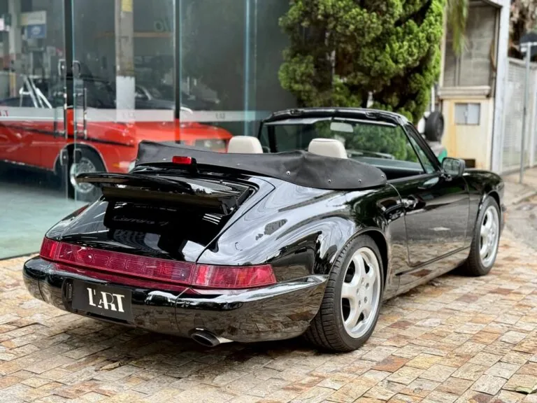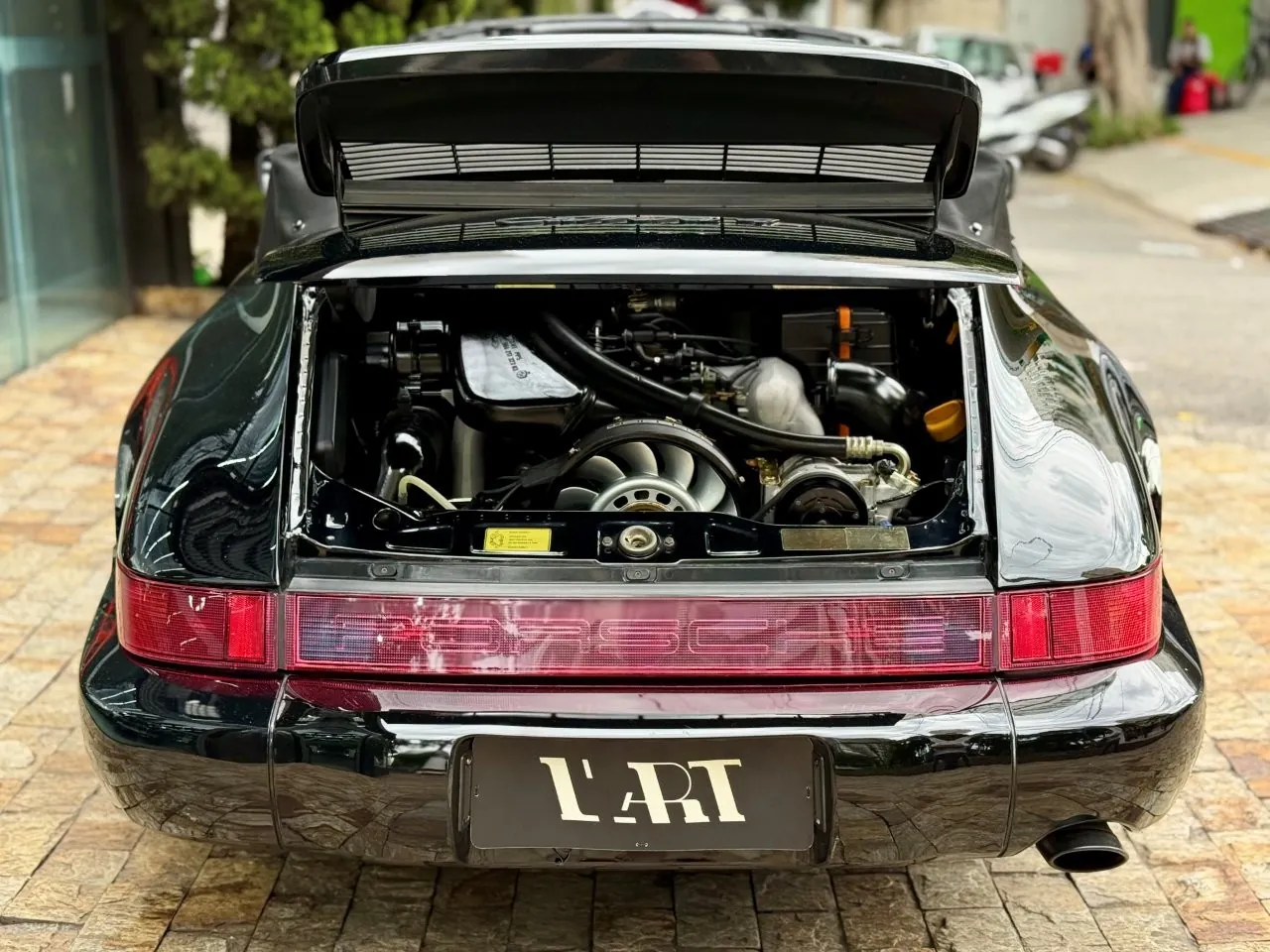 Baseado nas inovações do 959, o 964 foi lançado neste período com a introdução do Carrera 4, com tração nas 4 rodas, uma decisão que surpreendeu muitos, mas demonstrou o compromisso da Porsche com seus clientes. O 964 foi um dos primeiros carros do mundo a apresentar airbags duplos de fábrica. Seu motor 6 cilindros boxer produz 250 CV com câmbio manual de 5 velocidades. Nosso 964 está em excelente estado geral, possui rodas aro 17'' e 4 pneus novos. Na linda combinação de cores preta com interior cinza e capota azul preta.