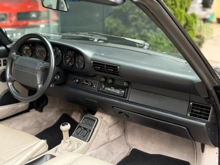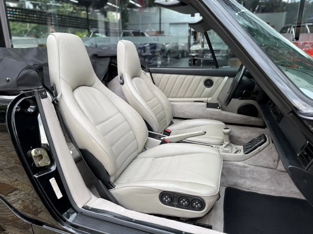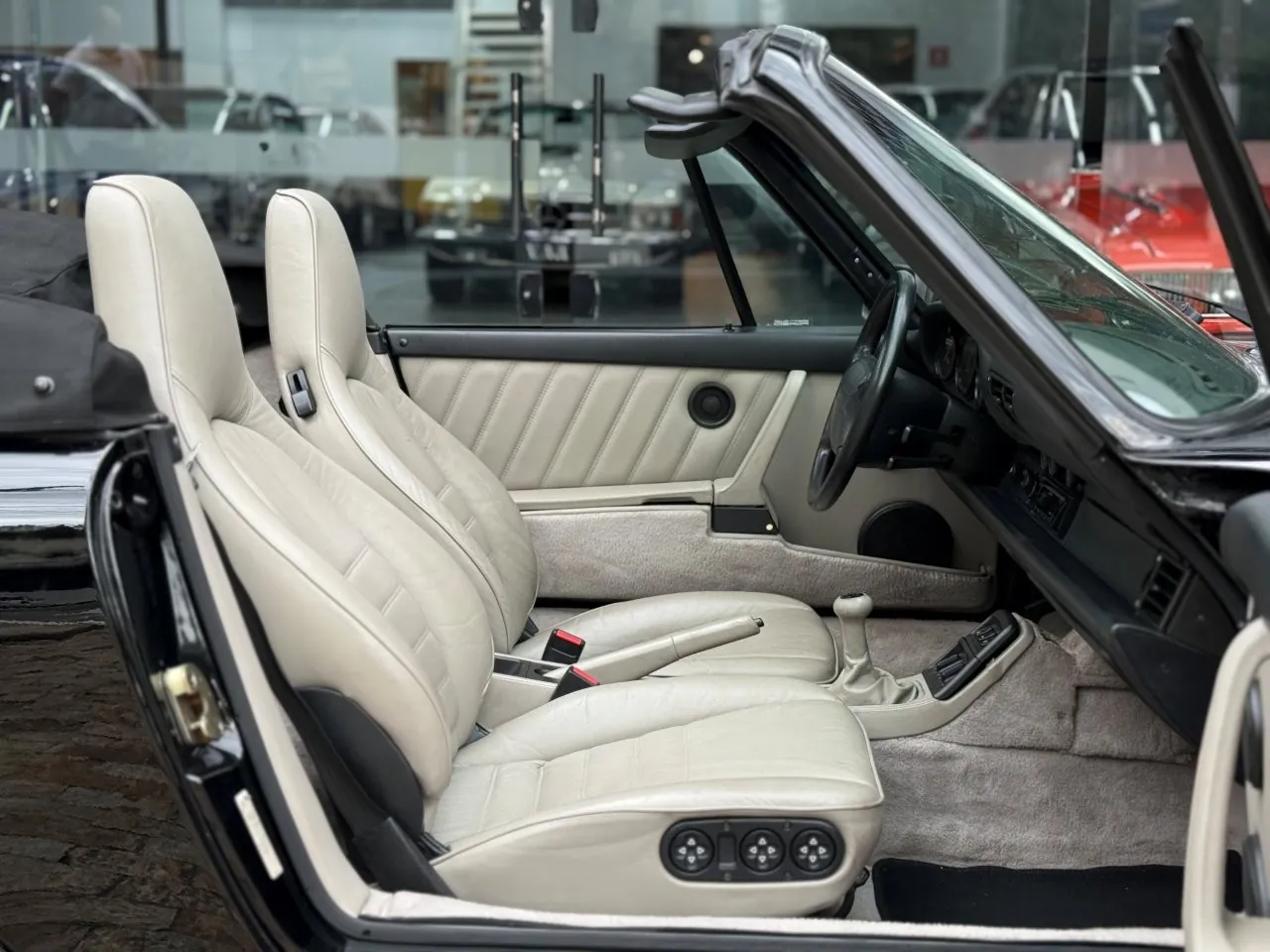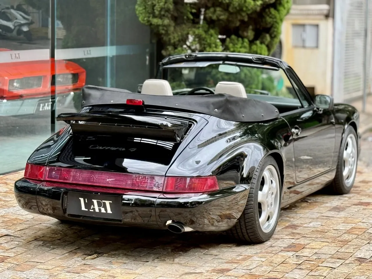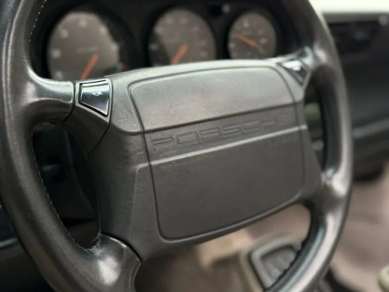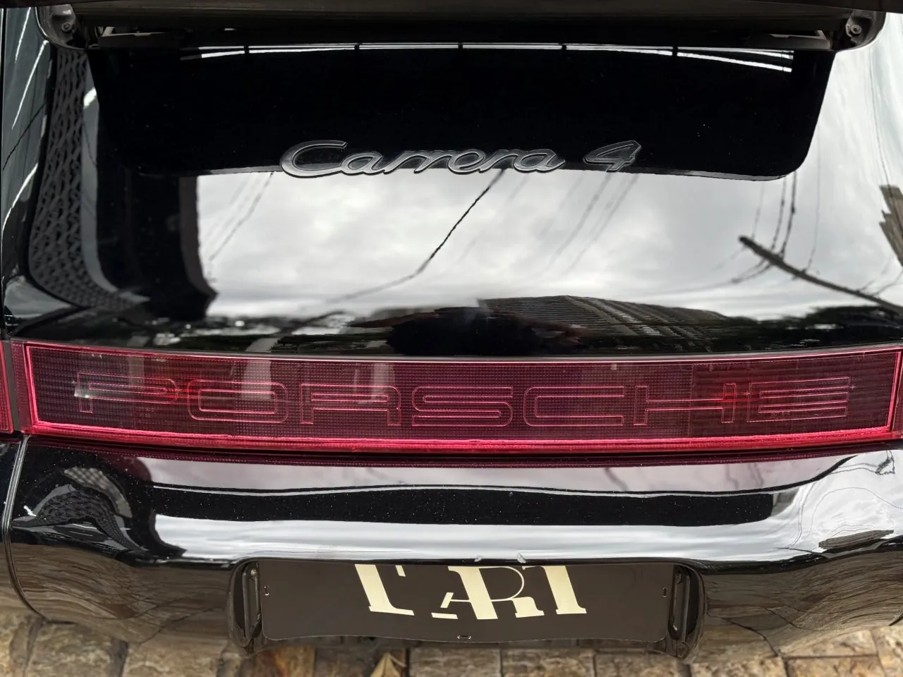 Baseado nas inovações do 959, o 964 foi lançado neste período com a introdução do Carrera 4, com tração nas 4 rodas, uma decisão que surpreendeu muitos, mas demonstrou o compromisso da Porsche com seus clientes. O 964 foi um dos primeiros carros do mundo a apresentar airbags duplos de fábrica. Seu motor 6 cilindros boxer produz 250 CV com câmbio manual de 5 velocidades. Nosso 964 está em excelente estado geral, possui rodas aro 17'' e 4 pneus novos. Na linda combinação de cores preta com interior cinza e capota azul preta.