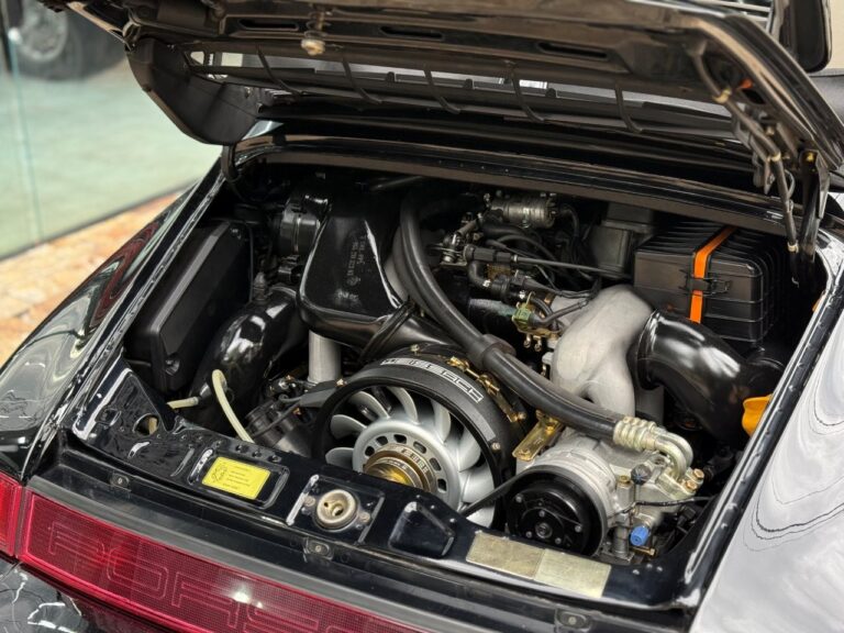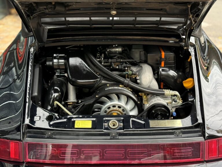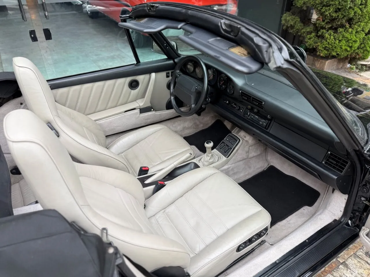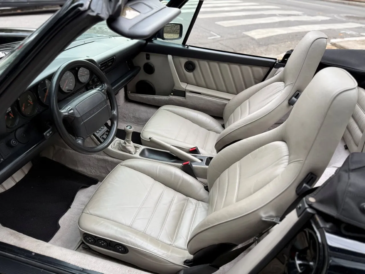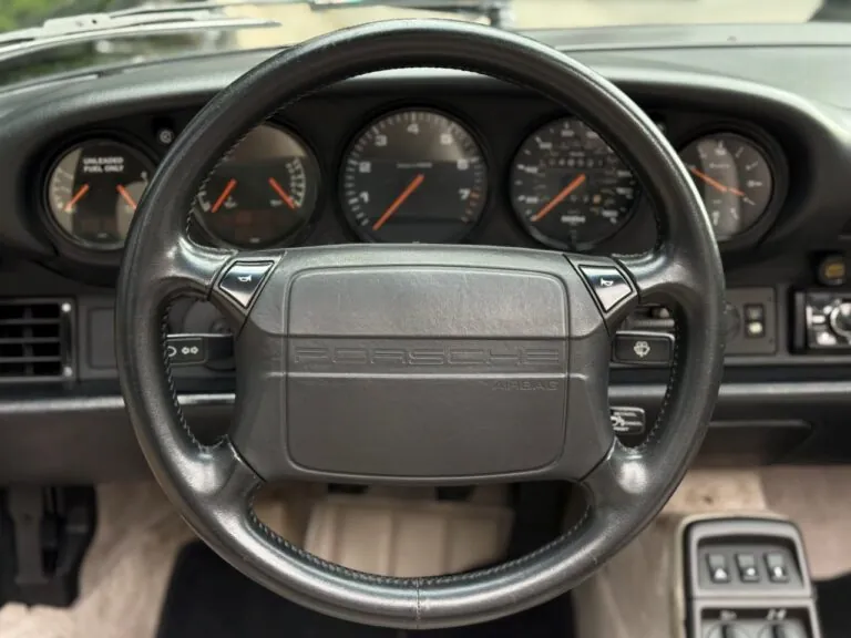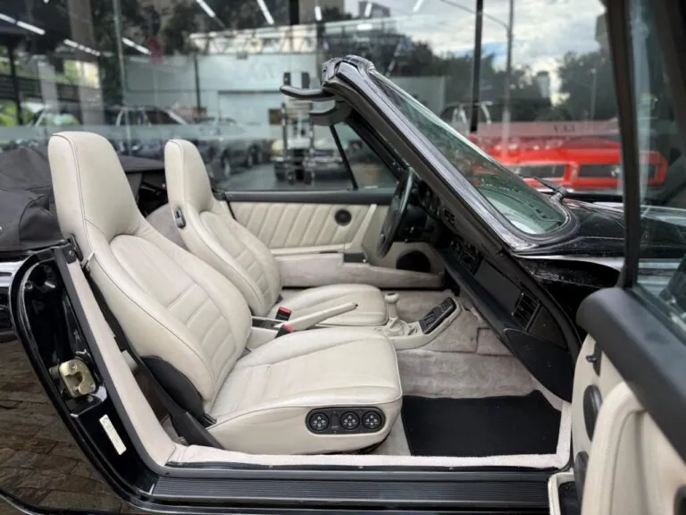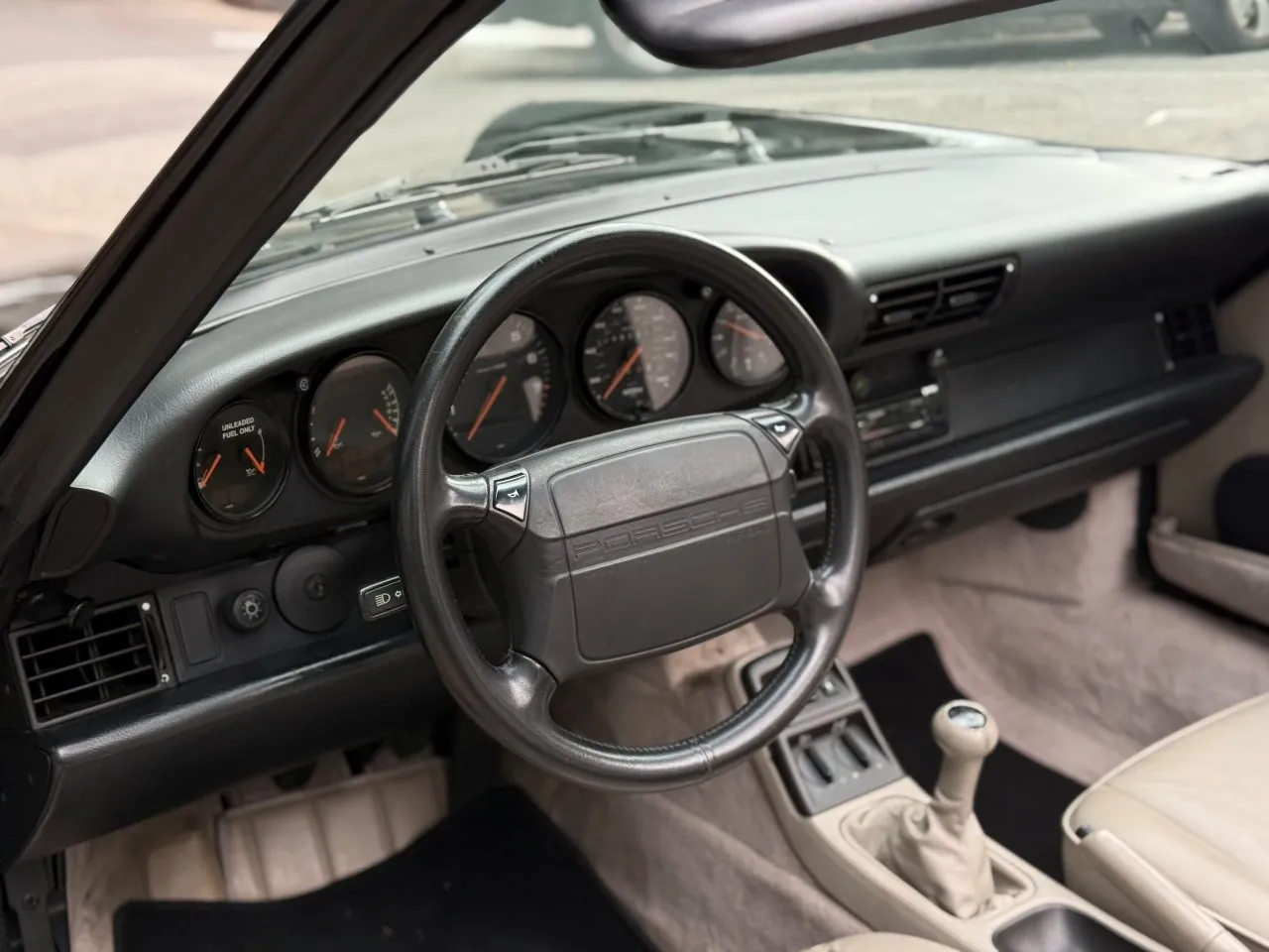 Baseado nas inovações do 959, o 964 foi lançado neste período com a introdução do Carrera 4, com tração nas 4 rodas, uma decisão que surpreendeu muitos, mas demonstrou o compromisso da Porsche com seus clientes. O 964 foi um dos primeiros carros do mundo a apresentar airbags duplos de fábrica. Seu motor 6 cilindros boxer produz 250 CV com câmbio manual de 5 velocidades. Nosso 964 está em excelente estado geral, possui rodas aro 17'' e 4 pneus novos. Na linda combinação de cores preta com interior cinza e capota azul preta.