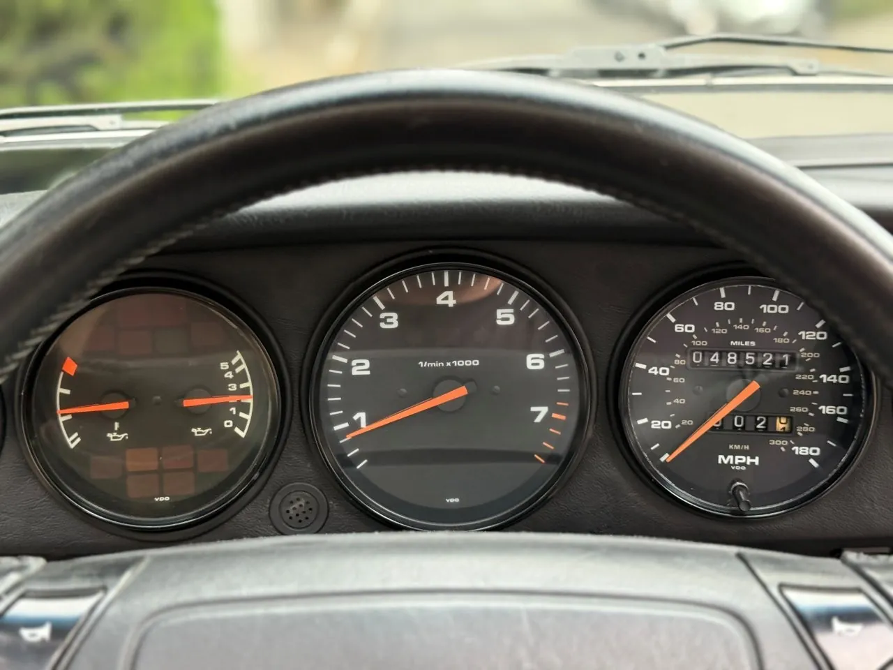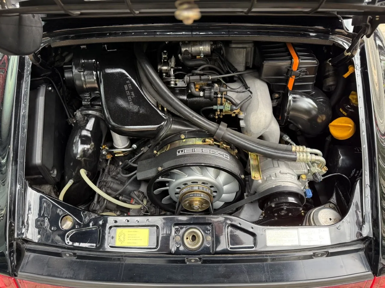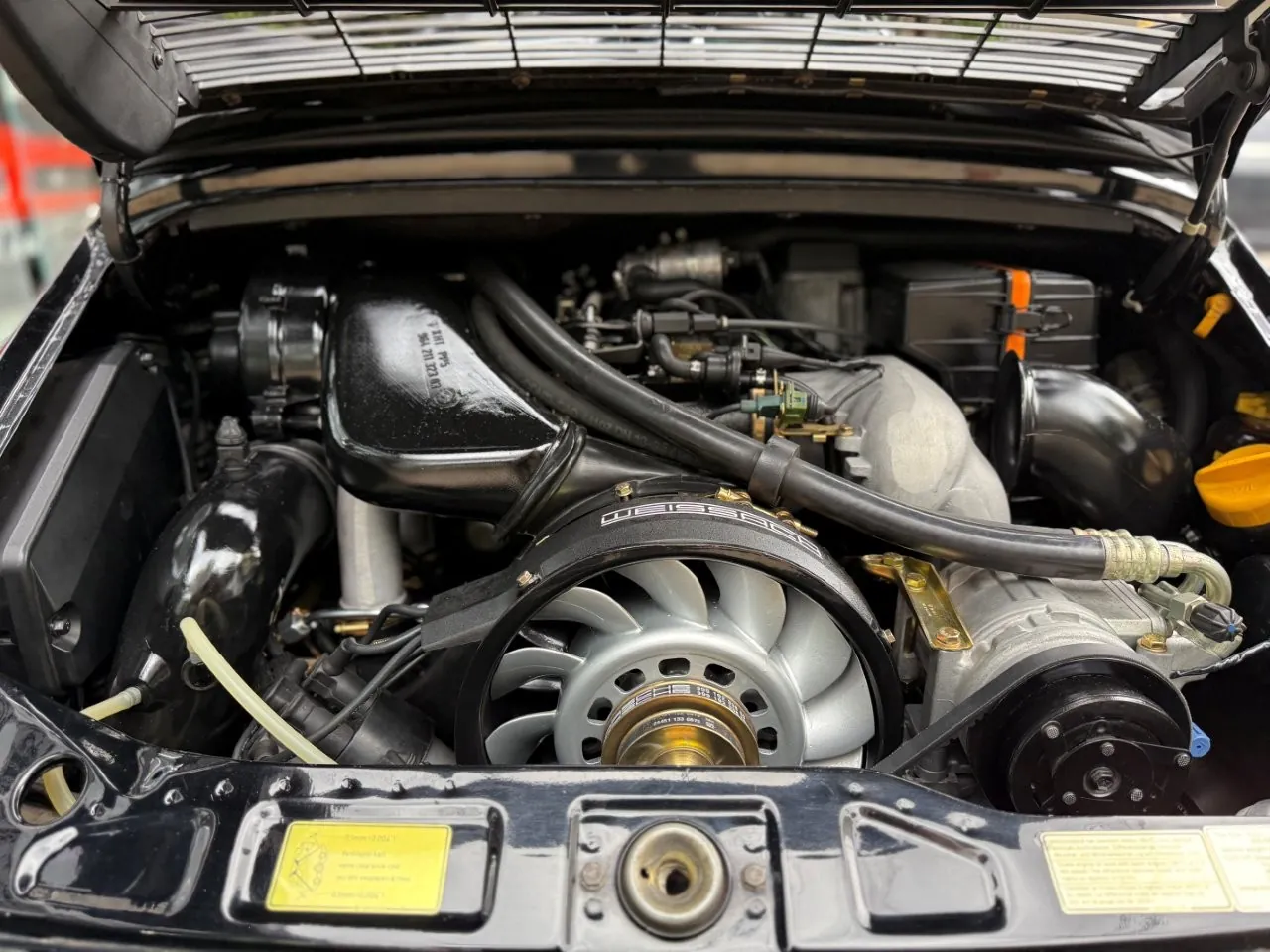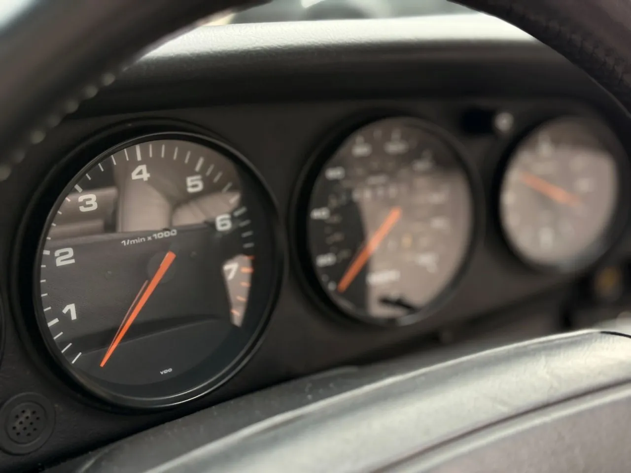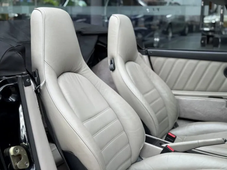 Baseado nas inovações do 959, o 964 foi lançado neste período com a introdução do Carrera 4, com tração nas 4 rodas, uma decisão que surpreendeu muitos, mas demonstrou o compromisso da Porsche com seus clientes. O 964 foi um dos primeiros carros do mundo a apresentar airbags duplos de fábrica. Seu motor 6 cilindros boxer produz 250 CV com câmbio manual de 5 velocidades. Nosso 964 está em excelente estado geral, possui rodas aro 17'' e 4 pneus novos. Na linda combinação de cores preta com interior cinza e capota azul preta.