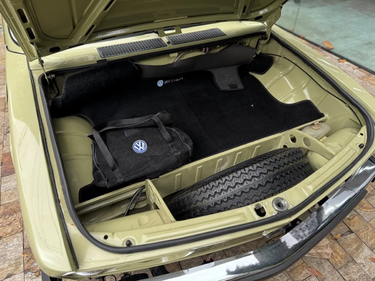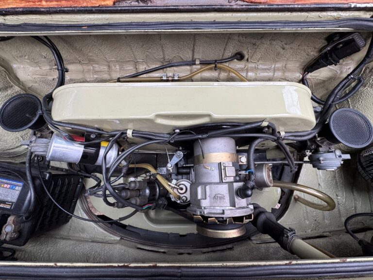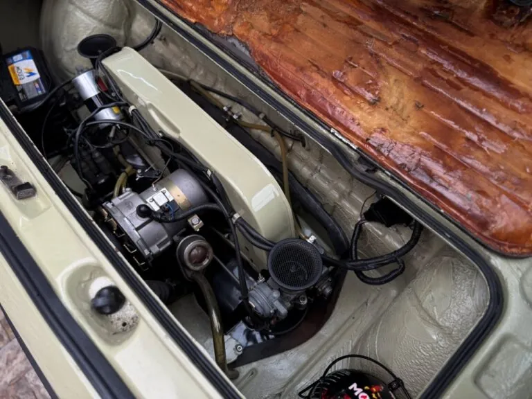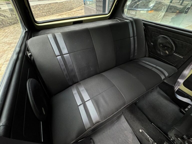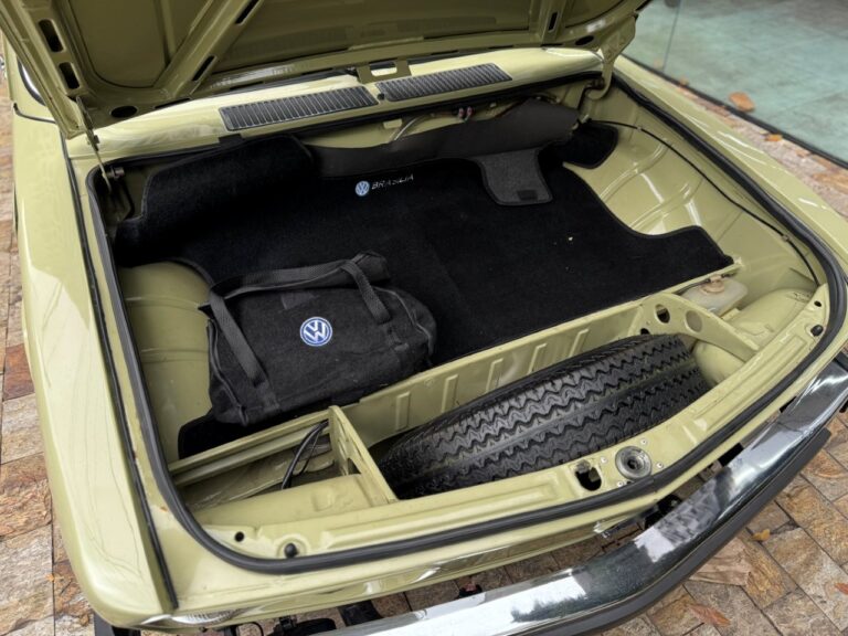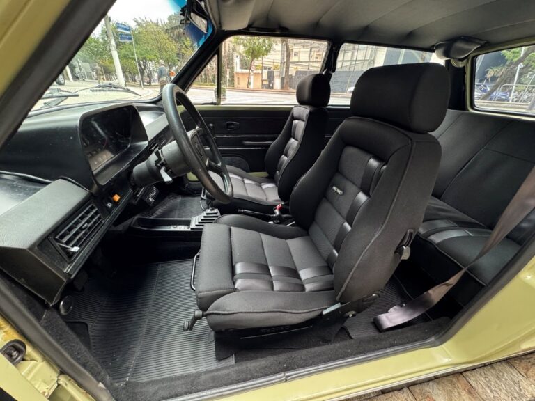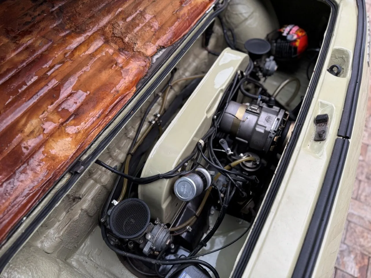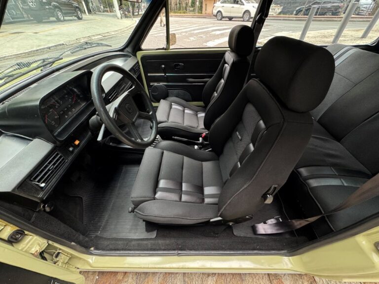 Na linda cor Verde Pampa, esta Brasília se destaca pelos upgrades mecânicos e uma série de acessórios que valorizam ainda mais o conjunto. Motor 1.8 com comando Engle 125, pistões e componentes internos Empi novos, virabrequim balanceado e ignição eletrônica completa. Equipada com freios a disco, suspensão dianteira com catraca mexicana e mangas de eixo invertidas, além de traseira com facões reguláveis, amortecedores novos e borrachas recentemente substituídas. Interior com volante de Passat TS, bancos Recaro e carpete preto. Rodas de época com pneus novos e painel com conta-giros.