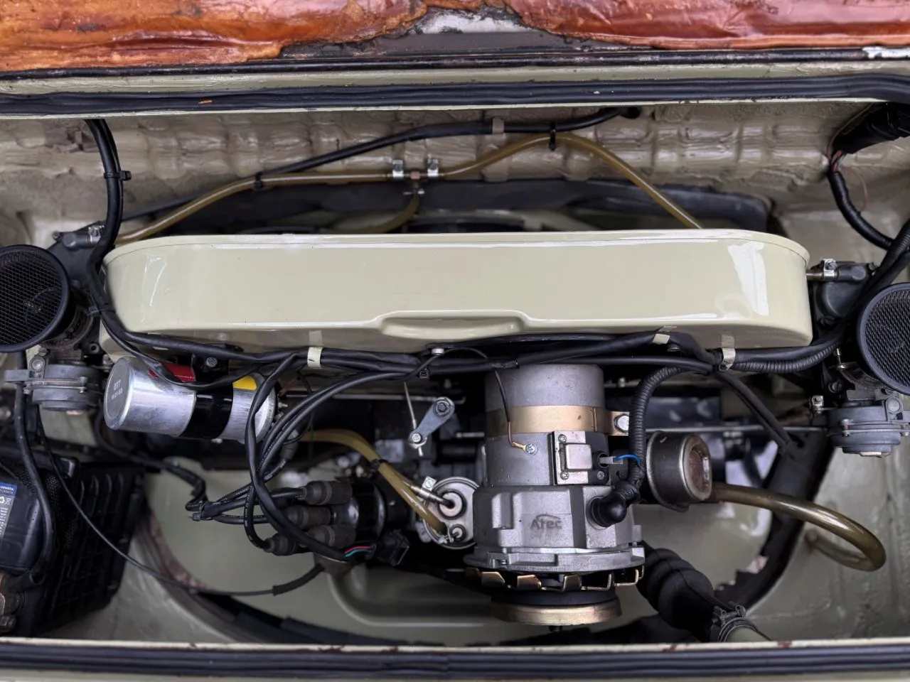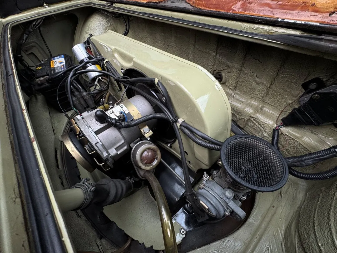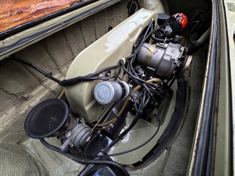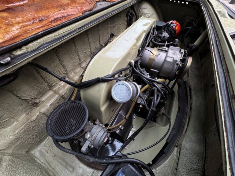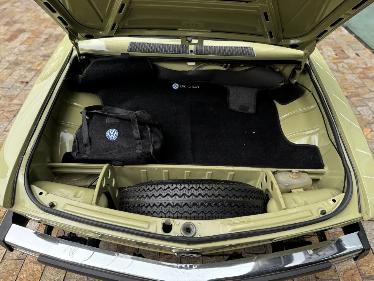 Na linda cor Verde Pampa, esta Brasília se destaca pelos upgrades mecânicos e uma série de acessórios que valorizam ainda mais o conjunto. Motor 1.8 com comando Engle 125, pistões e componentes internos Empi novos, virabrequim balanceado e ignição eletrônica completa. Equipada com freios a disco, suspensão dianteira com catraca mexicana e mangas de eixo invertidas, além de traseira com facões reguláveis, amortecedores novos e borrachas recentemente substituídas. Interior com volante de Passat TS, bancos Recaro e carpete preto. Rodas de época com pneus novos e painel com conta-giros.