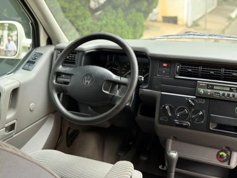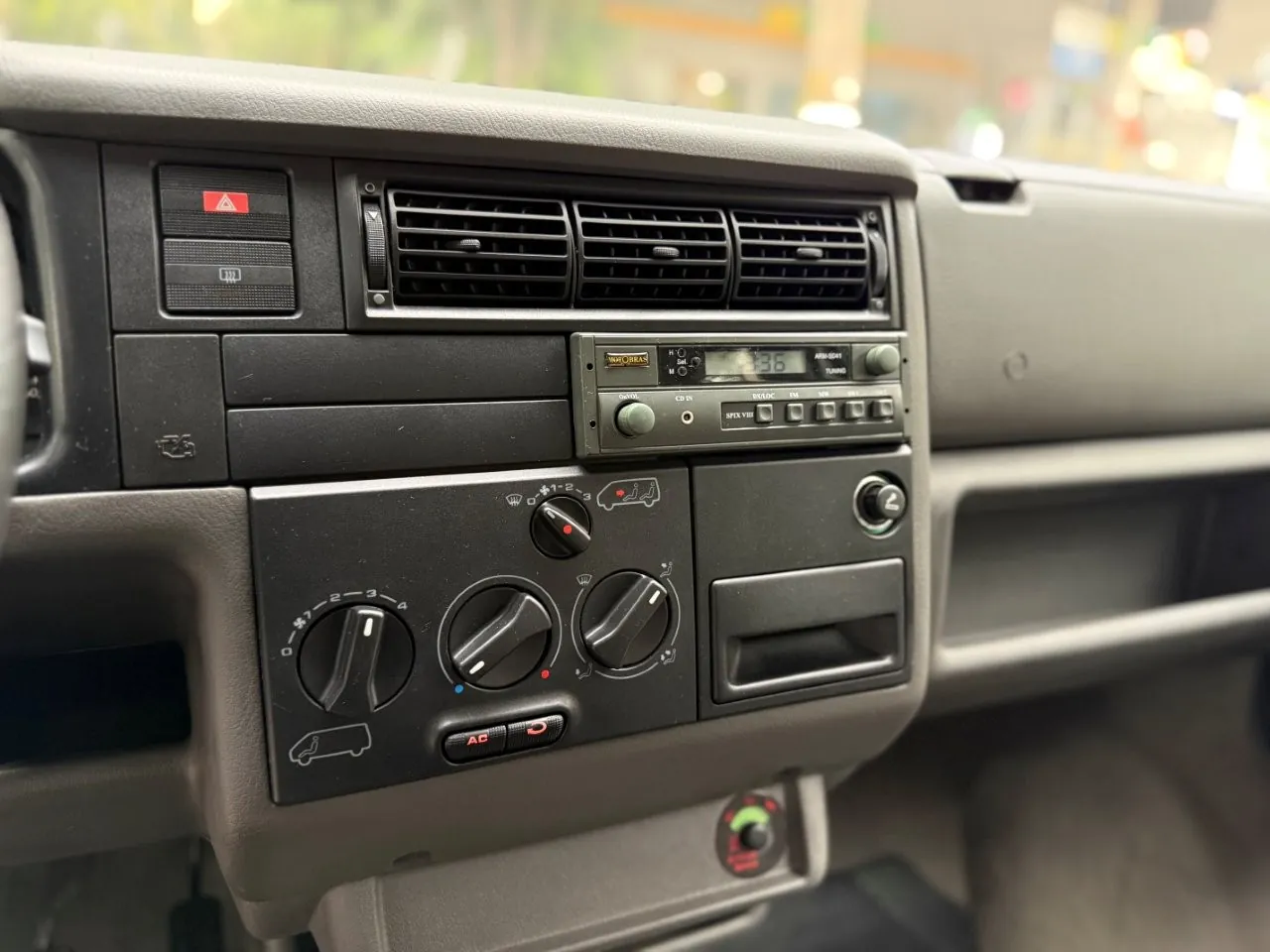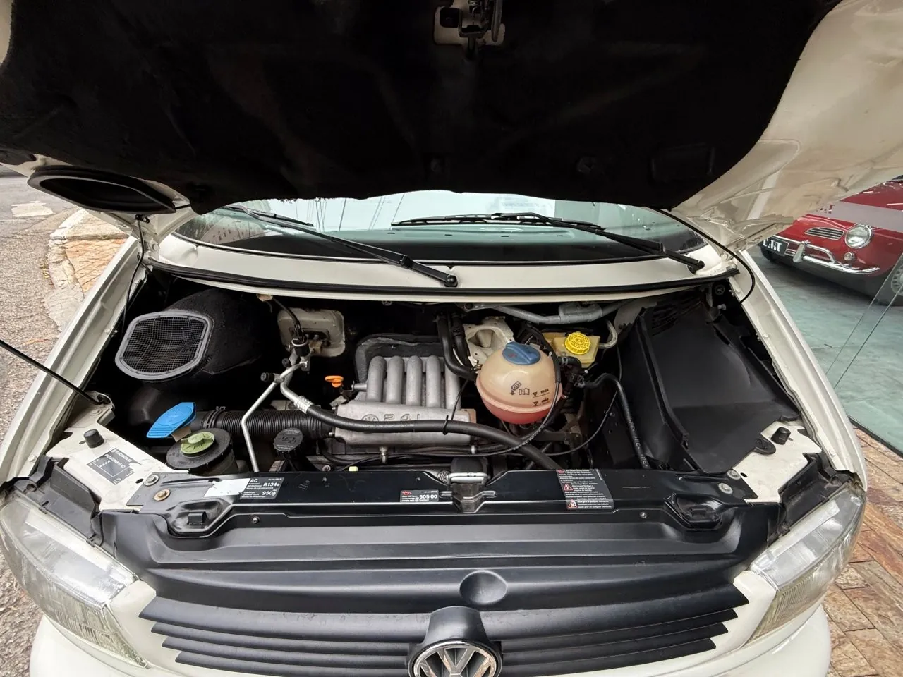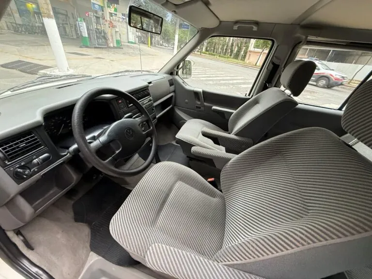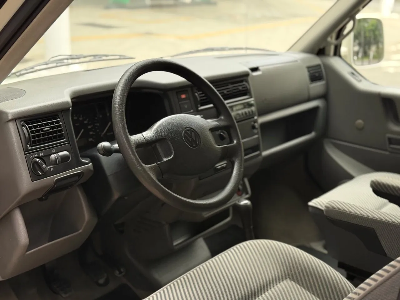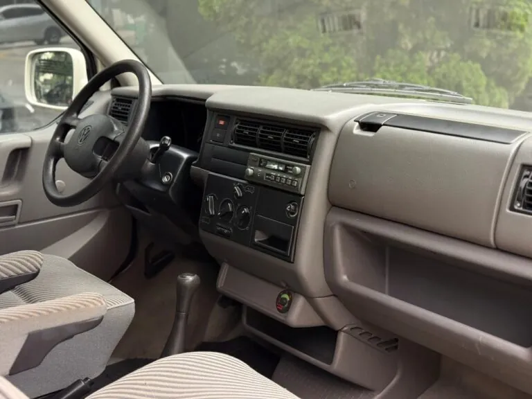 Branco Candy com interior em veludo listrado cinza, segundo dono, totalmente original e em excelente estado. Versão executiva e facelift da Eurovan, configurada para 10 lugares em 4 fileiras, com bancos dianteiros individuais e última fileira dobrável. Equipada com motor 2.4 cinco cilindros diesel e câmbio manual de 5 marchas, possui ar-condicionado, direção hidráulica, rádio original Motobras, forração e bancos originais em veludo, faróis com lâmpadas halógenas, rodas aro 16” diamantadas acompanhadas do jogo original com calotas. Com apenas 68 mil km, histórico comprovado desde zero km, retirada na VW Soldatelli no Rio Grande do Sul, totalmente revisada, acompanhada de peças sobressalentes originais, manual do proprietário e chave reserva. Um exemplar raríssimo pelo nível de originalidade, conservação e procedência.