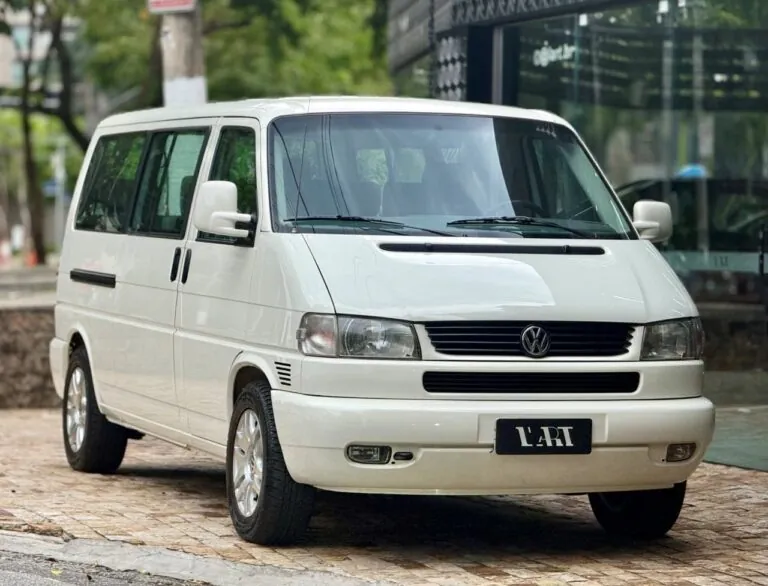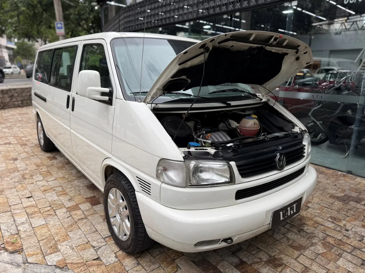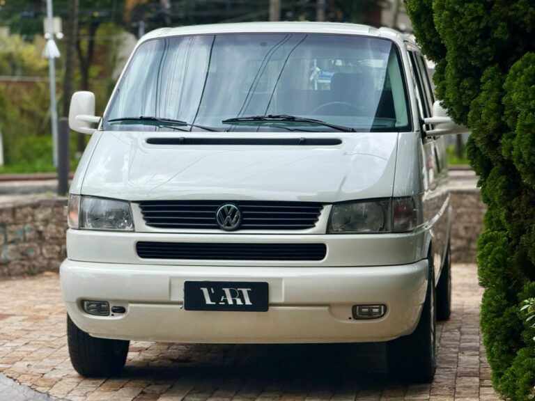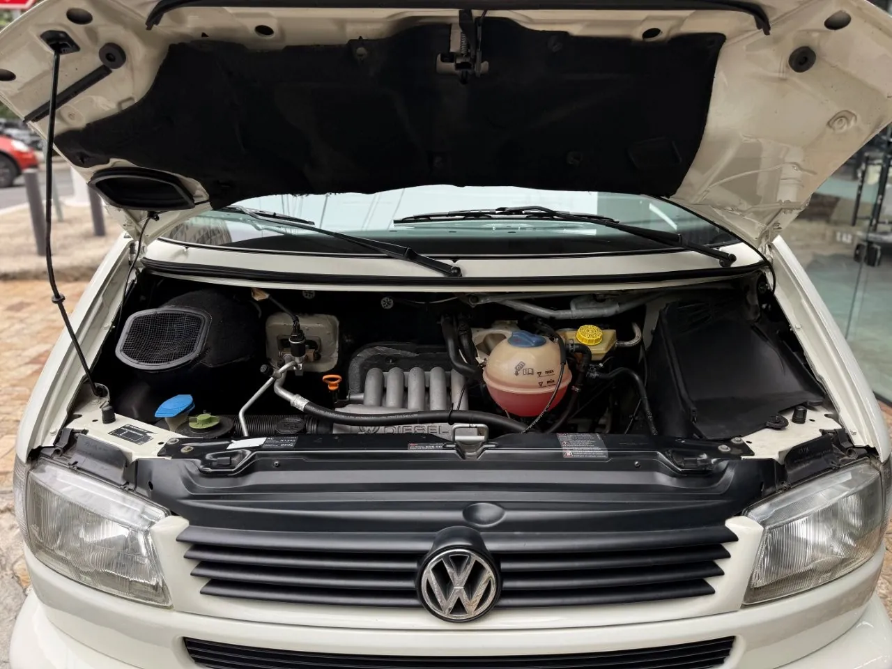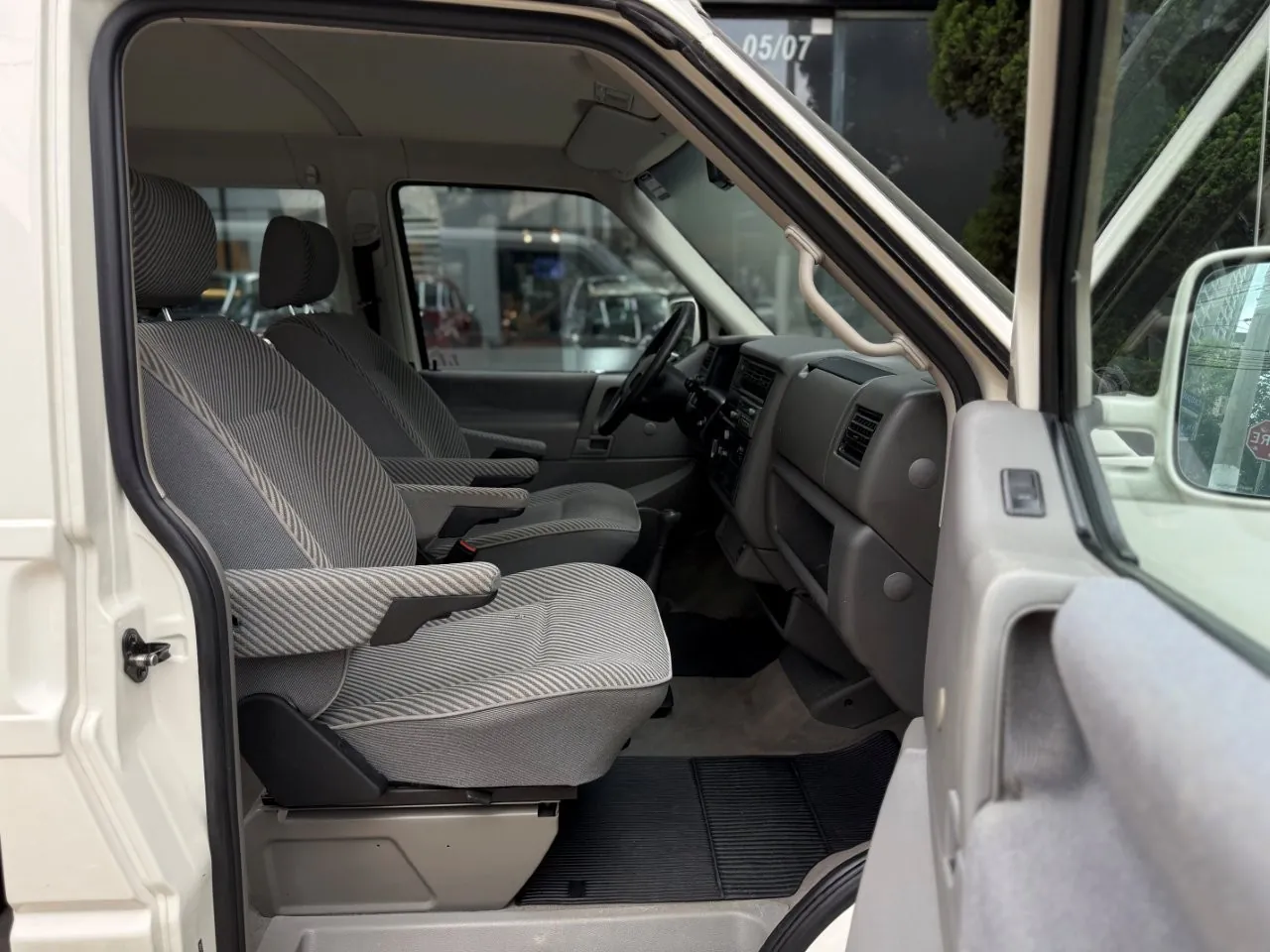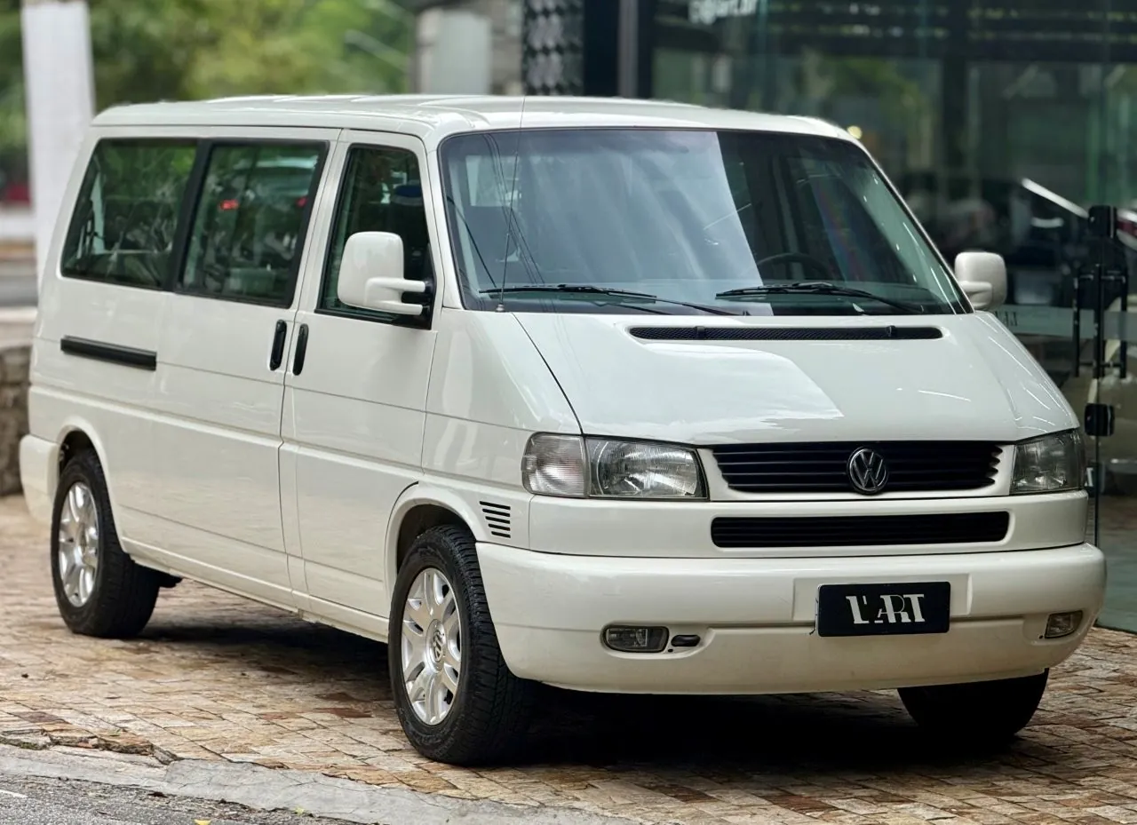 Branco Candy com interior em veludo listrado cinza, segundo dono, totalmente original e em excelente estado. Versão executiva e facelift da Eurovan, configurada para 10 lugares em 4 fileiras, com bancos dianteiros individuais e última fileira dobrável. Equipada com motor 2.4 cinco cilindros diesel e câmbio manual de 5 marchas, possui ar-condicionado, direção hidráulica, rádio original Motobras, forração e bancos originais em veludo, faróis com lâmpadas halógenas, rodas aro 16” diamantadas acompanhadas do jogo original com calotas. Com apenas 68 mil km, histórico comprovado desde zero km, retirada na VW Soldatelli no Rio Grande do Sul, totalmente revisada, acompanhada de peças sobressalentes originais, manual do proprietário e chave reserva. Um exemplar raríssimo pelo nível de originalidade, conservação e procedência.