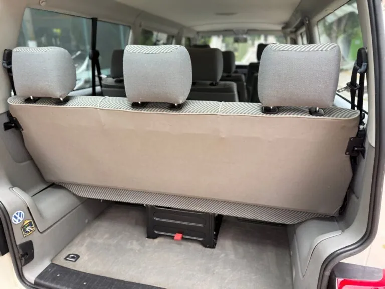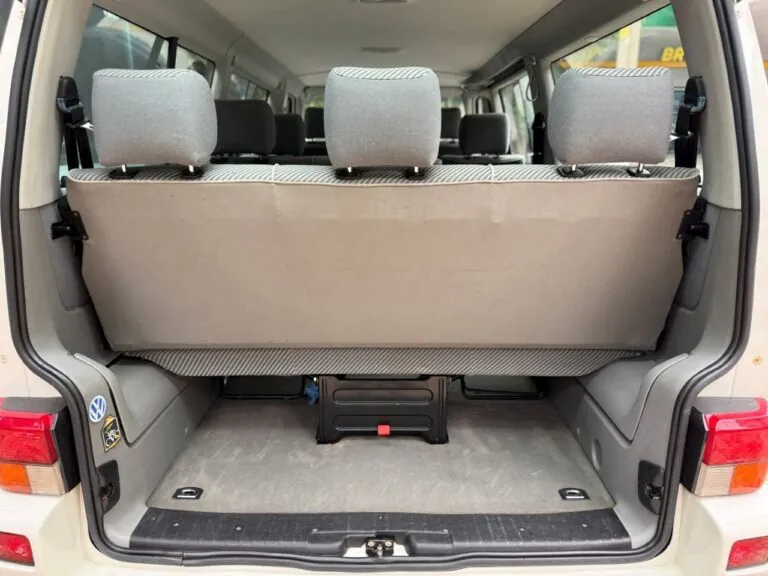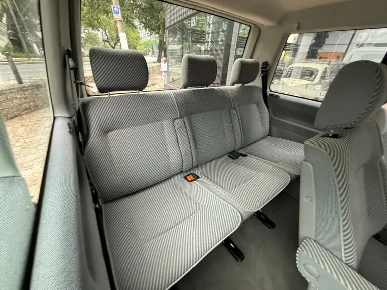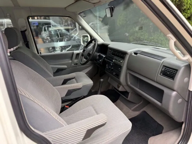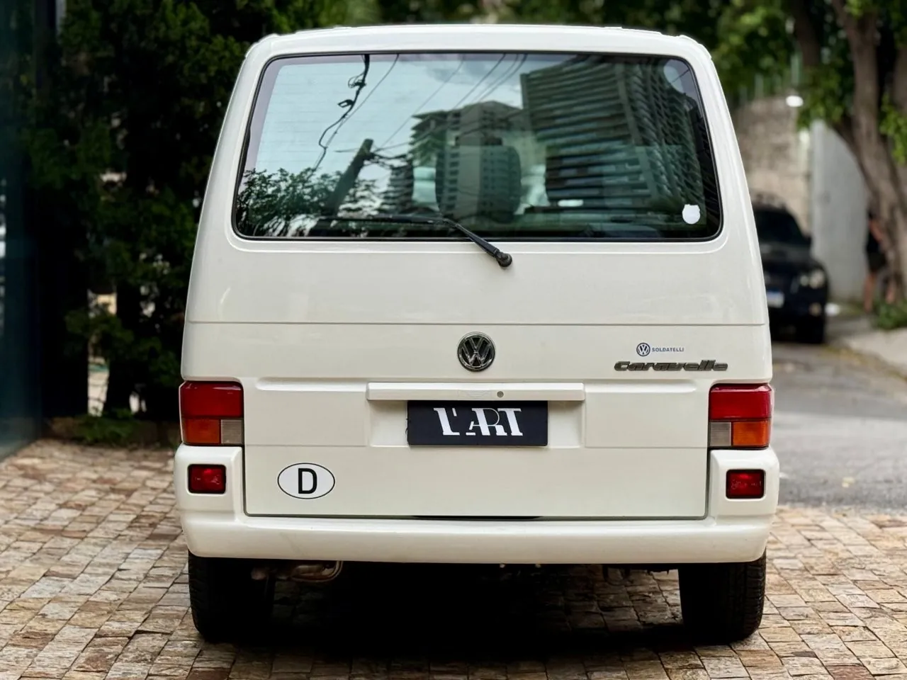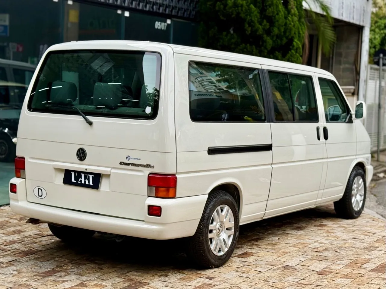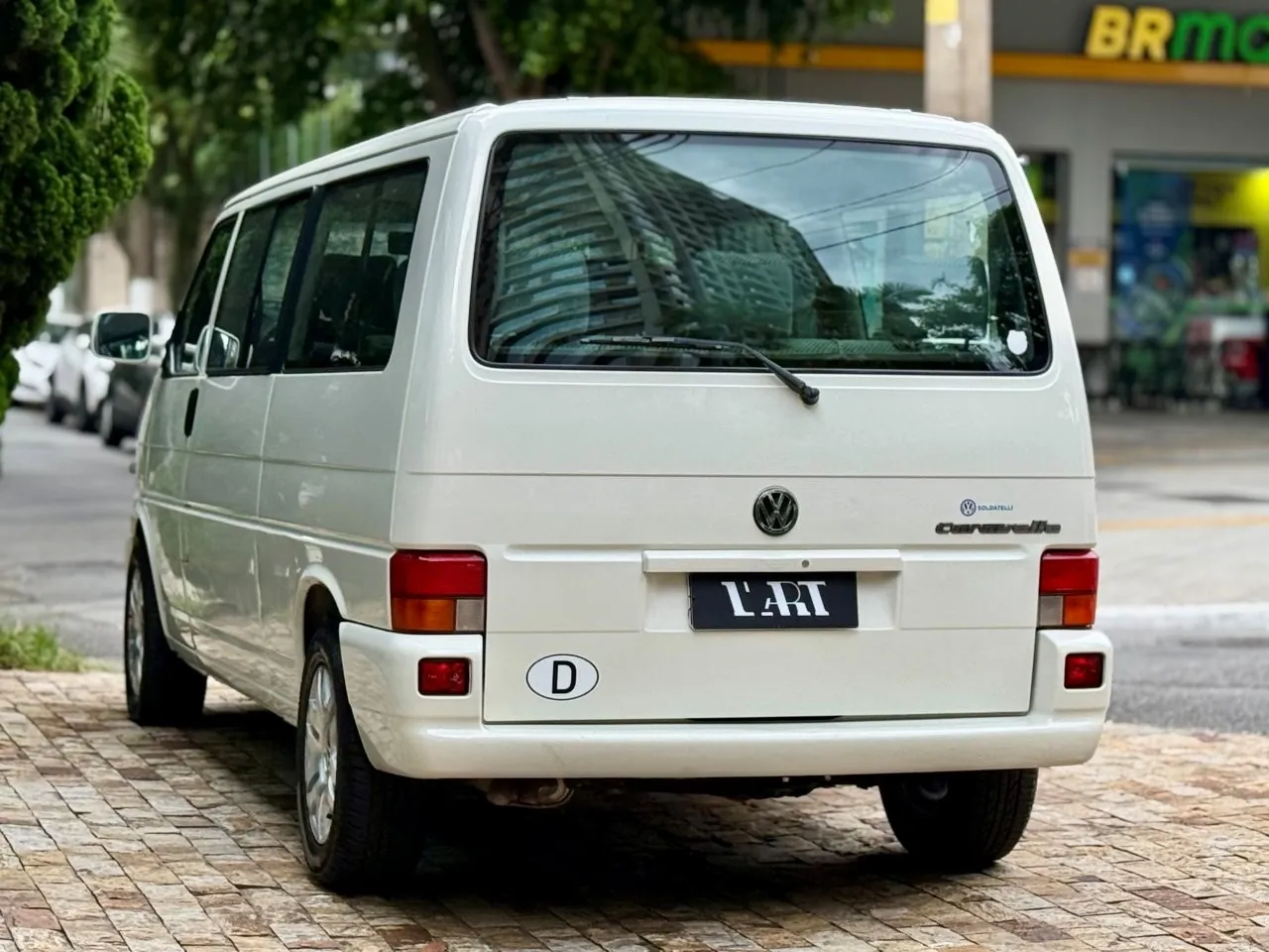 Branco Candy com interior em veludo listrado cinza, segundo dono, totalmente original e em excelente estado. Versão executiva e facelift da Eurovan, configurada para 10 lugares em 4 fileiras, com bancos dianteiros individuais e última fileira dobrável. Equipada com motor 2.4 cinco cilindros diesel e câmbio manual de 5 marchas, possui ar-condicionado, direção hidráulica, rádio original Motobras, forração e bancos originais em veludo, faróis com lâmpadas halógenas, rodas aro 16” diamantadas acompanhadas do jogo original com calotas. Com apenas 68 mil km, histórico comprovado desde zero km, retirada na VW Soldatelli no Rio Grande do Sul, totalmente revisada, acompanhada de peças sobressalentes originais, manual do proprietário e chave reserva. Um exemplar raríssimo pelo nível de originalidade, conservação e procedência.
