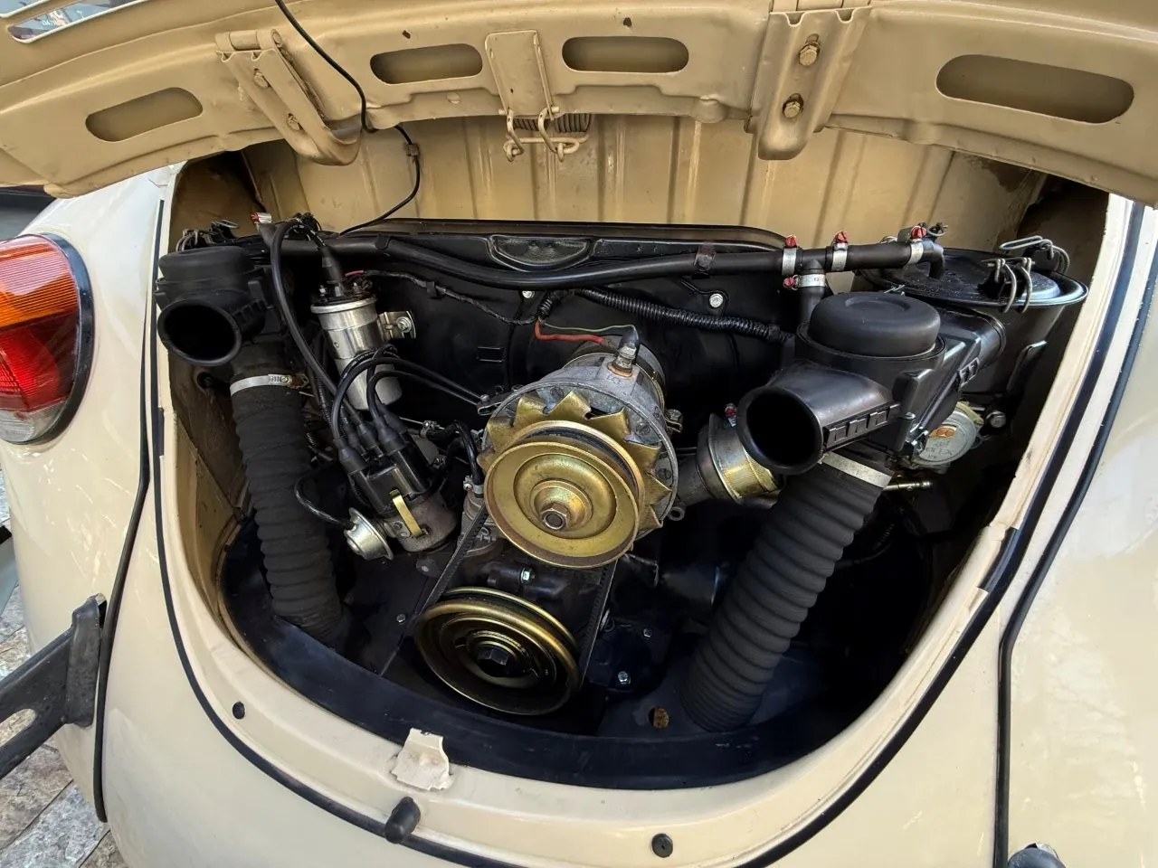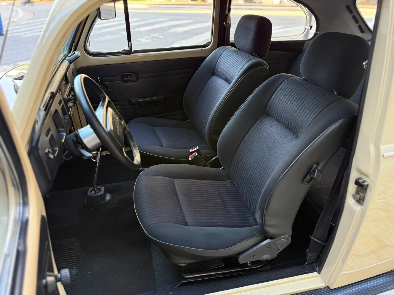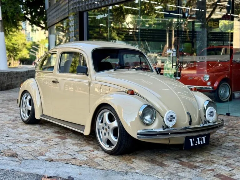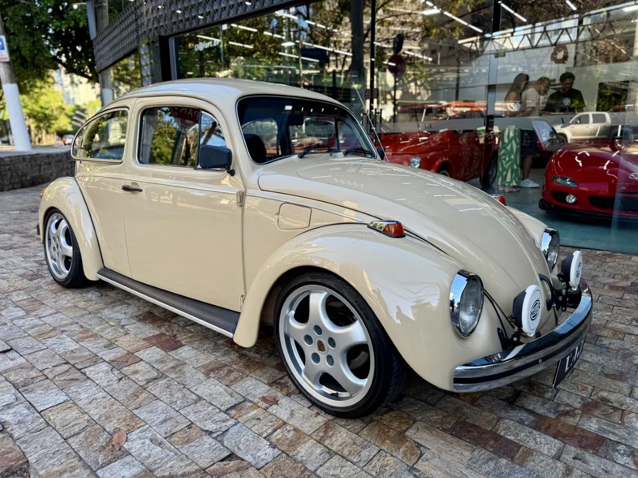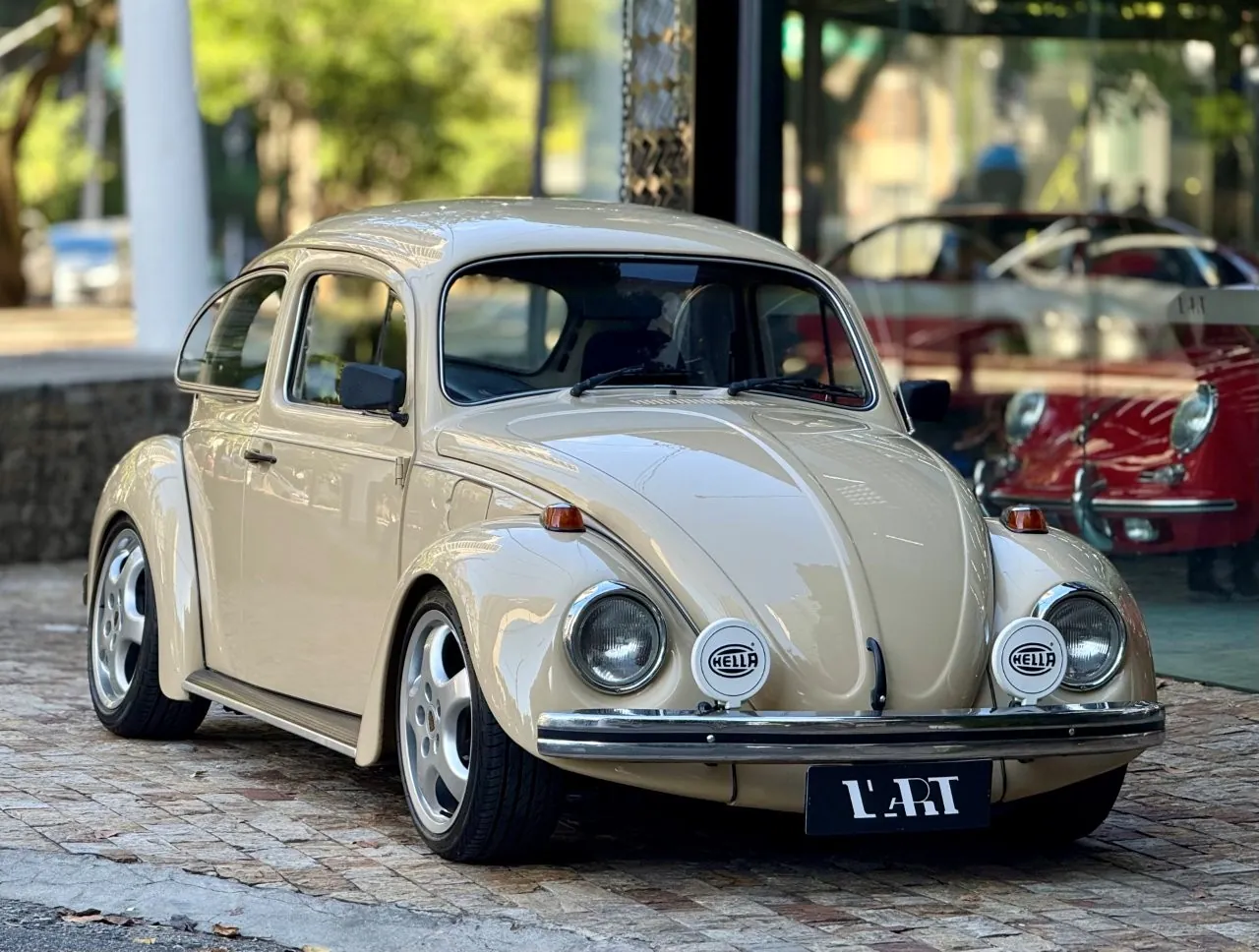 No clássico estilo German Look, nessa linda cor Bege Vime. Um carro muito alinhado, trazendo os detalhes certos do estilo alemão de época. Rodas Porsche aro 17", motor 1.600 original, tapeçaria de fábrica em ótimo estado, faróis originais, lanternas traseiras do Fusca alemão, alavanca Empi, faróis de milha Hella e volante modelo Porsche. Um conjunto honesto, bonito e de presença. Possui placa preta