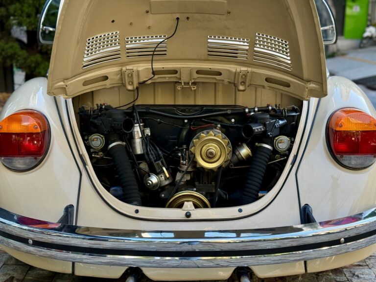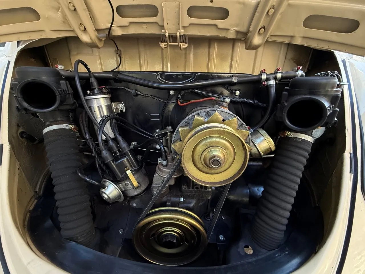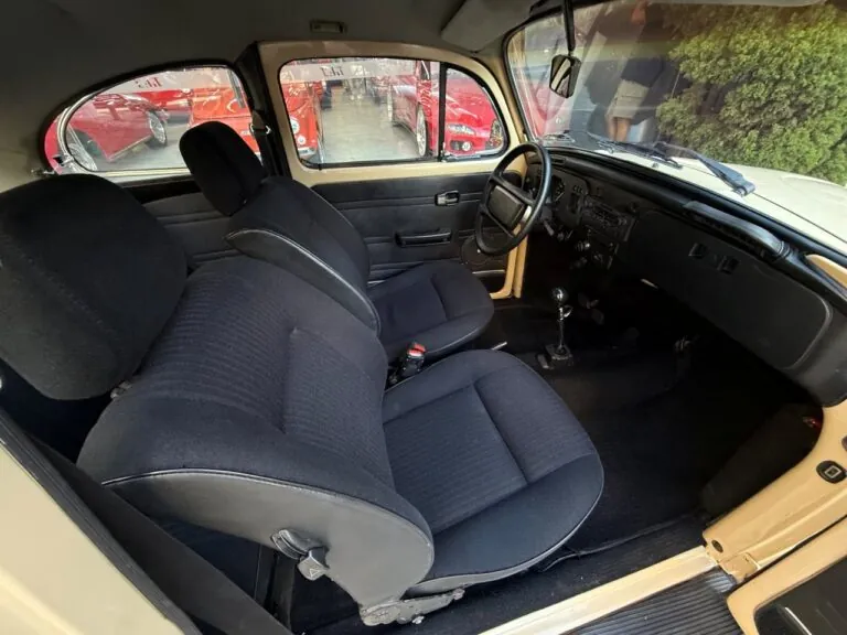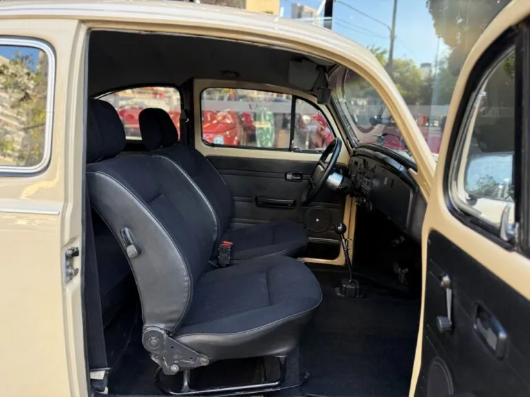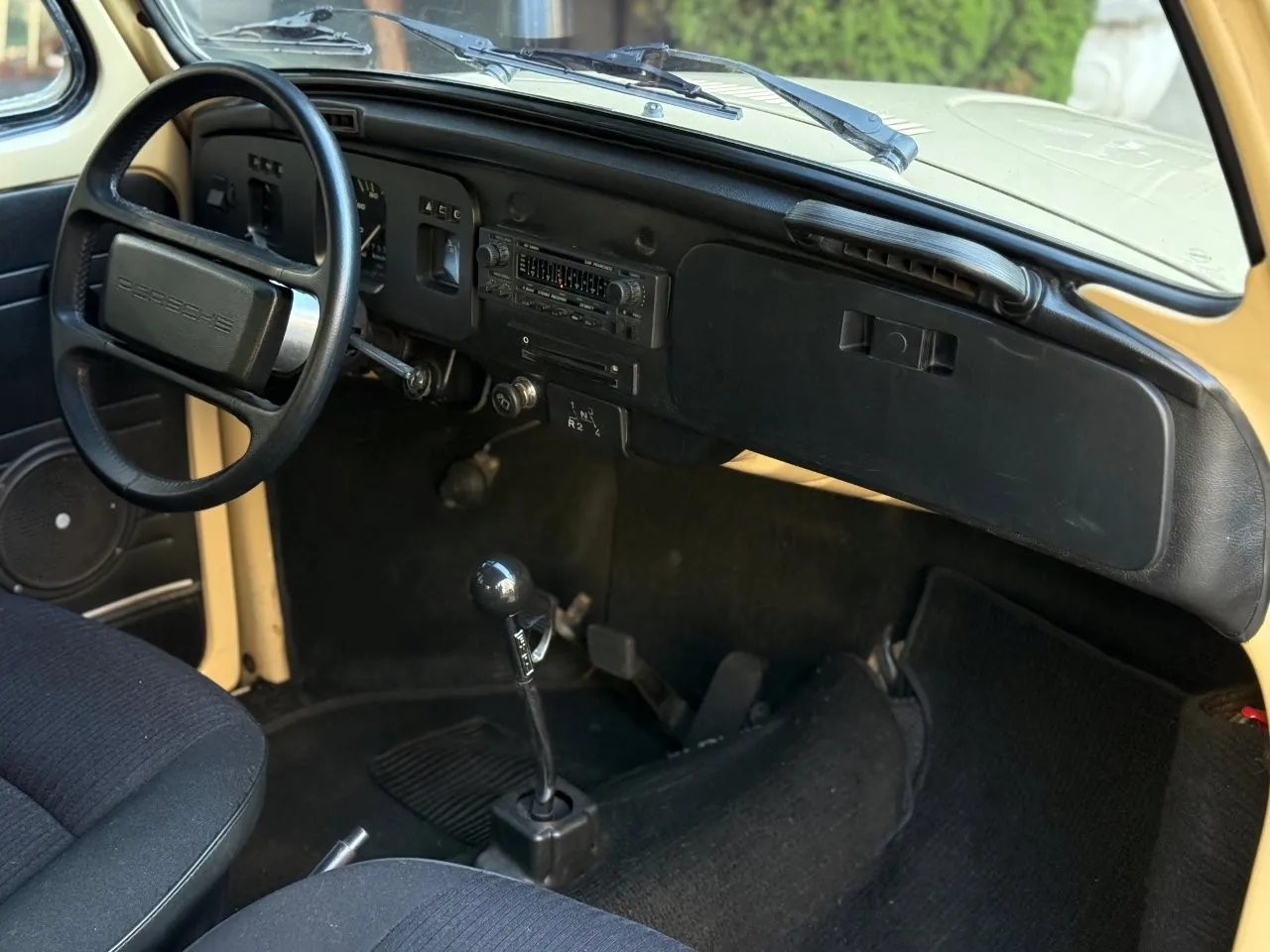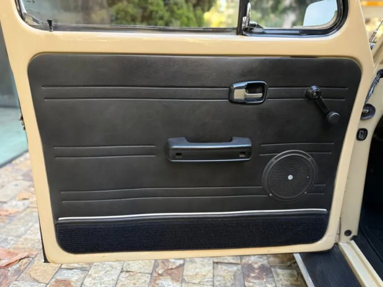 No clássico estilo German Look, nessa linda cor Bege Vime. Um carro muito alinhado, trazendo os detalhes certos do estilo alemão de época. Rodas Porsche aro 17", motor 1.600 original, tapeçaria de fábrica em ótimo estado, faróis originais, lanternas traseiras do Fusca alemão, alavanca Empi, faróis de milha Hella e volante modelo Porsche. Um conjunto honesto, bonito e de presença. Possui placa preta