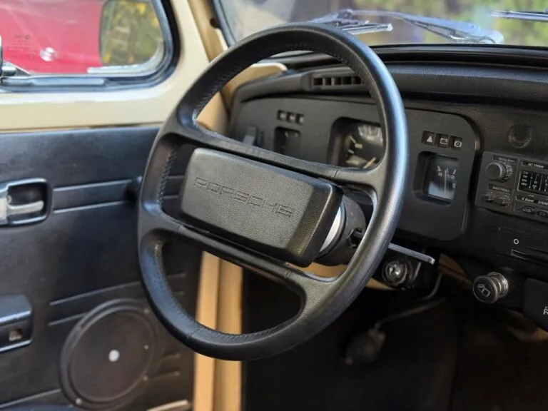 A Mercedes-Benz 500 SL 1982 é um dos roadsters mais marcantes da marca. O nome SL vem de “Sport Leicht” — Esporte Leve, e esse conceito aparece no carro todo. Ela vem com o V8 5.0 em alumínio, 230 cv, um motor conhecido pela força, suavidade e durabilidade. A combinação com o câmbio automático de 4 marchas e a tração traseira entrega exatamente aquilo que se espera de uma R107: acelera fácil, viaja macio e responde do jeito certo. Em curva, é um carro que surpreende pela estabilidade. Os freios a disco nas quatro rodas e as rodas de liga leve completam o conjunto. Essa 500 SL está em ótimo estado geral, alinhada, íntegra e com aquela presença clássica que só uma R107 bem cuidada tem.