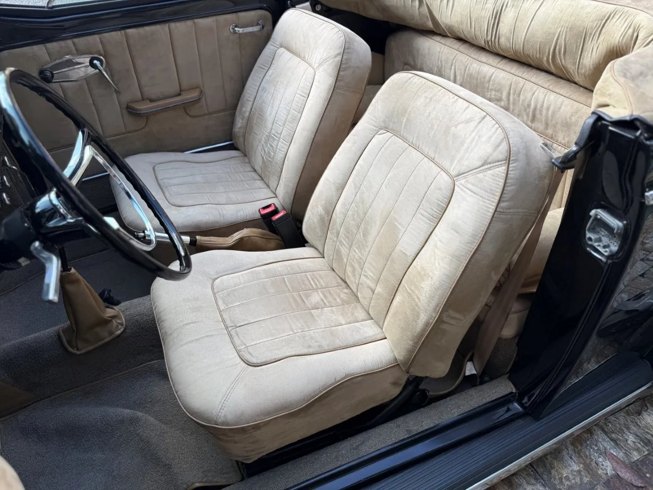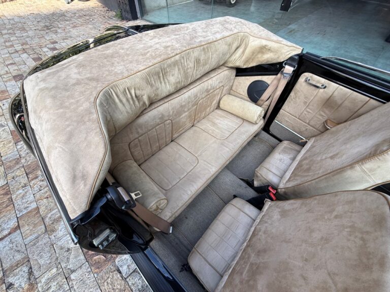 Réplica feita pela Trocar, construída sobre um Fusca 1964. Carro muito bem executado, com motor 1600, acabamento refinado e interior em suede bege, mantendo o estilo clássico com um toque mais atual. Conta com suspensão com catraca, manga EMPI e facão regulável. Possui rodas Fuchs aro 16” com quatro pneus novos, além de rádio com Bluetooth integrado, unindo visual retrô e praticidade moderna. Uma recriação de ótimo gosto, fiel nas linhas e com aquele charme único dos conversíveis Hebmüller.