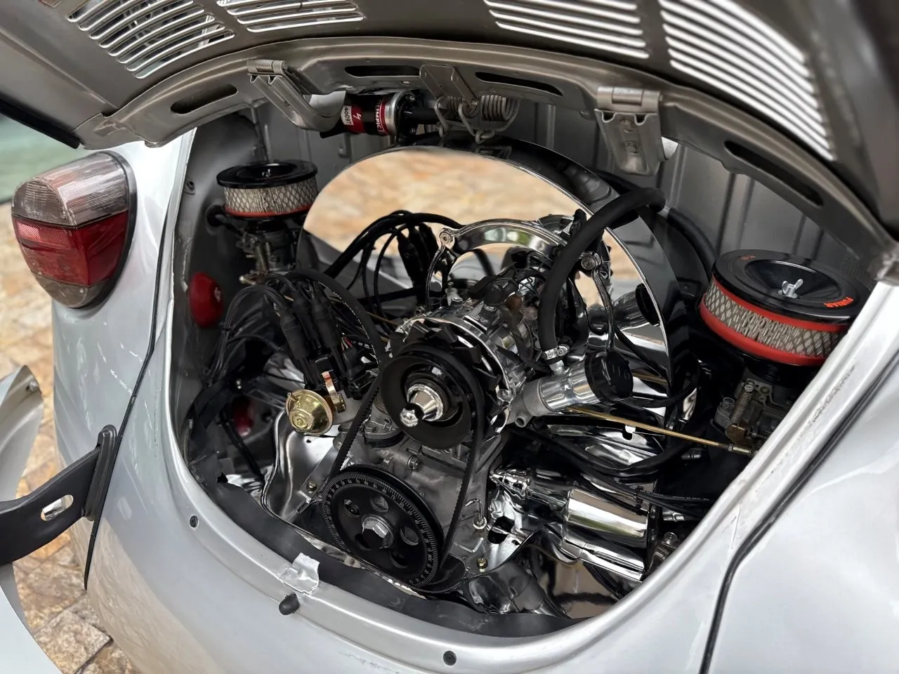 Este exemplar se destaca por seu visual e pelas modificações de personalidade. O verdadeiro destaque: este Fusca possui um motor 2054 cc (zero km), feito pelo preparador Tonella — “quintal do Tonela”. Um conjunto que une estética refinada com performance. A carroceria está na cor prata, complementada por suspensão levemente rebaixada, escape em inox da MAF, rodas Twister aro 17" com pneus novos, volante de madeira Henkel e bancos especiais. A edição especial Série Ouro, lançada pela Volkswagen em 1996, marcou o fim da produção do Fusca no Brasil. Foram produzidas cerca de 1.500 unidades nessa série. Destas, aproximadamente 600 unidades receberam a cor “Prata Lunar”.