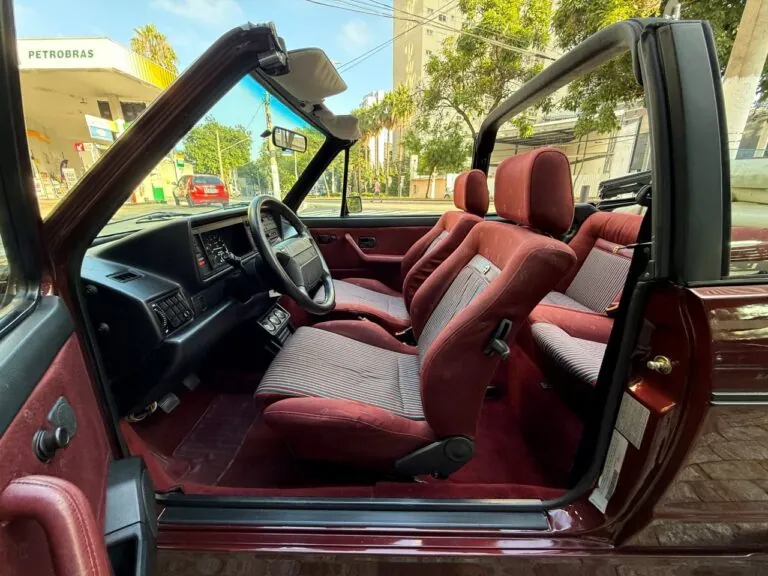 Na combinação azul atlântico com vermelho Turim, esse Fusca já chama atenção de cara e impressiona ainda mais pelo estado de preservação. Motor 1200 revisado, funcionamento redondo e um carro extremamente prazeroso de dirigir. Suspensão muito bem acertada. E na receita simples, que não tem erro: levemente rebaixado com rodas Fuchs.