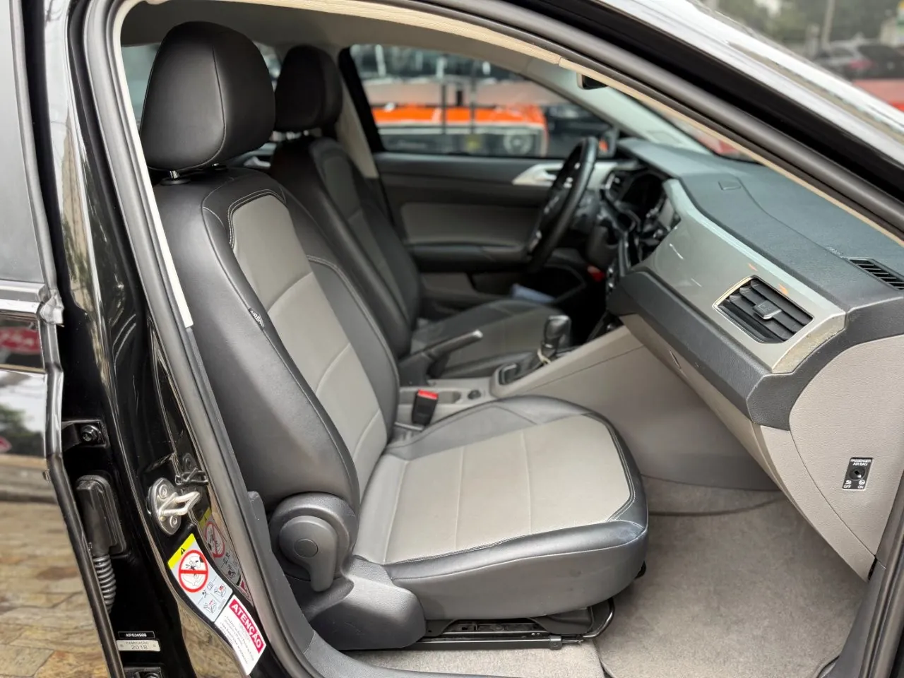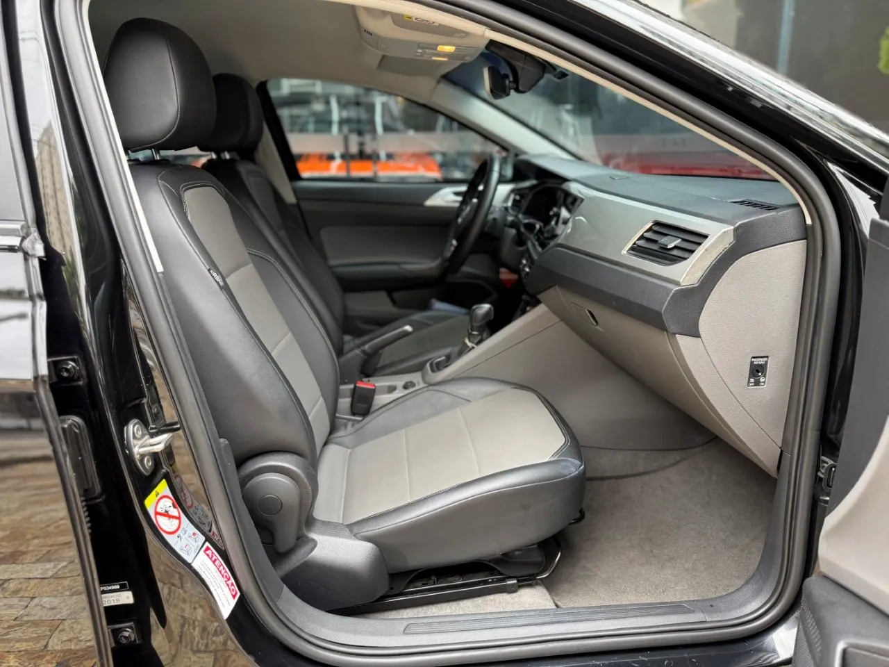 Bancos em couro preto, ar-condicionado e direção elétrica.