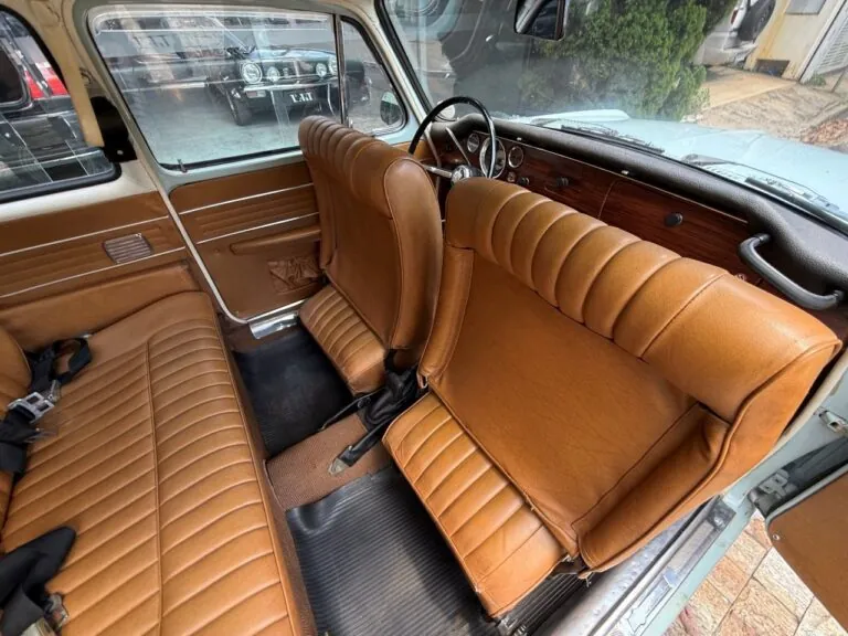 Cinza rato com interior bordô, exclusivo fastback inglês 2+2 de baixa produção, com desenho assinado pela Pininfarina. Este exemplar pertenceu ao ex-presidente do MG Clube do Brasil e proprietário da R&E Restaurações, responsável por uma restauração completa realizada há muitos anos, abrangendo pintura, tapeçaria, mecânica, suspensão, câmbio, embreagem e parte elétrica, já com alternador no lugar do dínamo original. Equipado com câmbio manual de 4 marchas com overdrive Laycock curto, luz de mapa, instrumentação Smiths completa com conta-giros e indicadores de combustível, pressão do óleo e temperatura da água, motor 1.8 com válvulas no cabeçote entregando 95 cv, rodas de liga leve inglesas de oito gomos, faróis e milhas Lucas, adesivos no vidro lateral e placa preta do ano com final 7. Um MGB GT extremamente correto, bem acertado e com histórico relevante, reunindo elegância, dirigibilidade e autenticidade.
