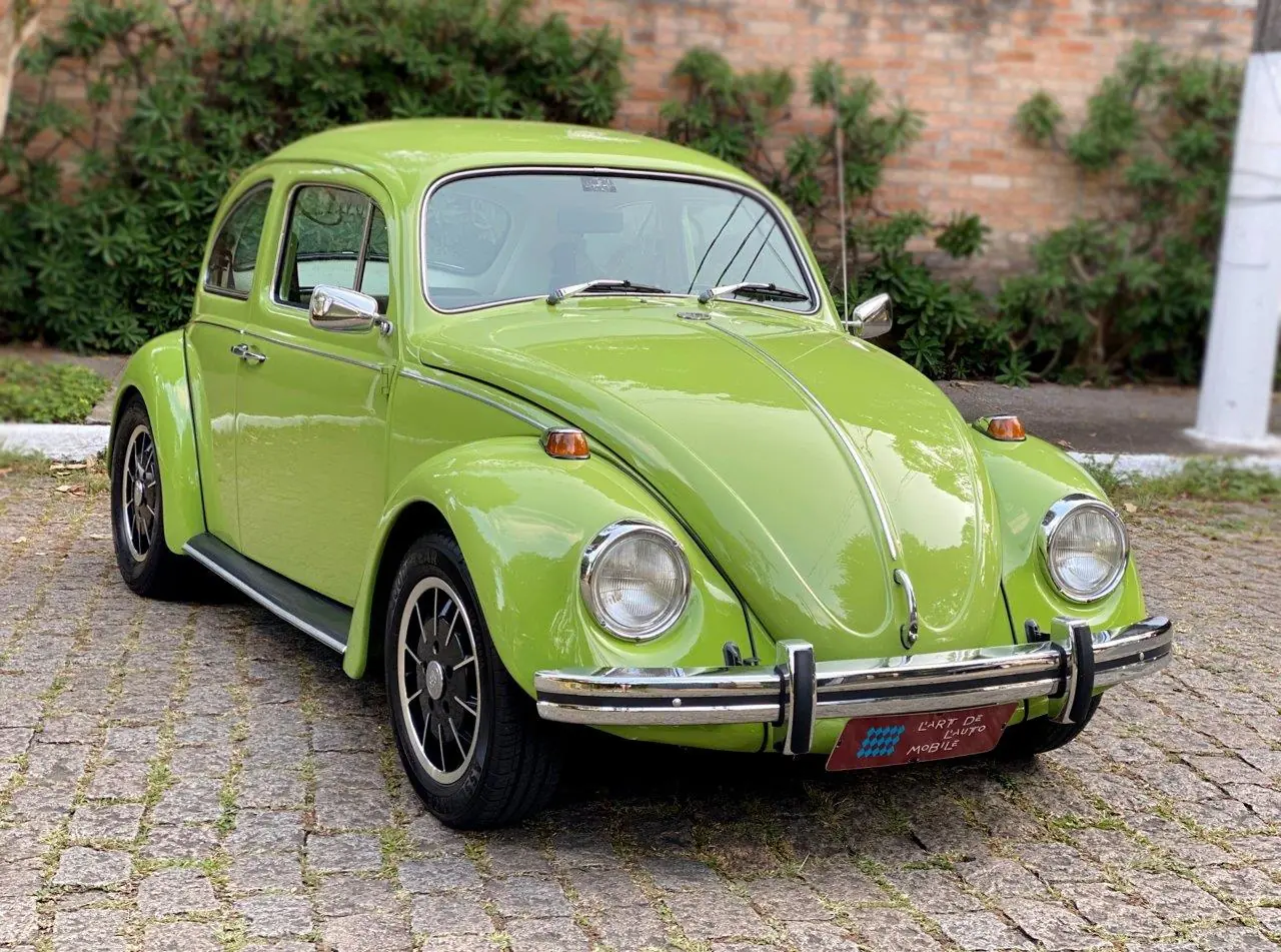 Na linda cor Verde Hippie, nosso Fuscão está absolutamente novo e é maravilhoso de andar! Possui ar condicionado instalado pela "FrioAir", rodas Gas Burner aro 15 da marca Empi, quatro pneus novos, alavanca de engate rápido Empi e lanternas Hella originais. Interior em couro crú no padrão e desenho original de fábrica, muito bonito e bem feito. Painel, volante, motor, câmbio, faróis... tudo original do carro! Pintura, mecânica e tapeçaria em perfeito estado, nosso Fusca não tem absolutamente nada pra fazer. Vidros verdes completam seu estilo de época.